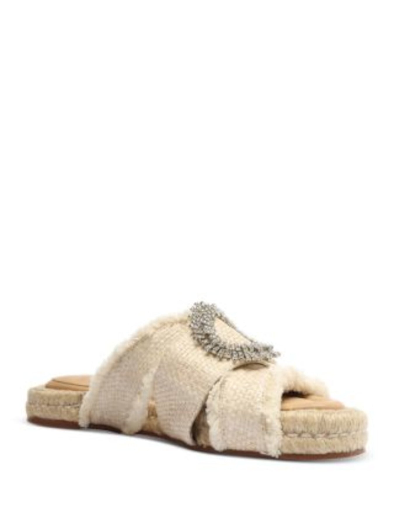 ALEXANDRE BIRMAN Womens Beige Woven Crystal Starburst Hardware Strappy Fringed Cushioned Madelina Round Toe Platform Slip On Dress Slide Sandals Shoes 35.5