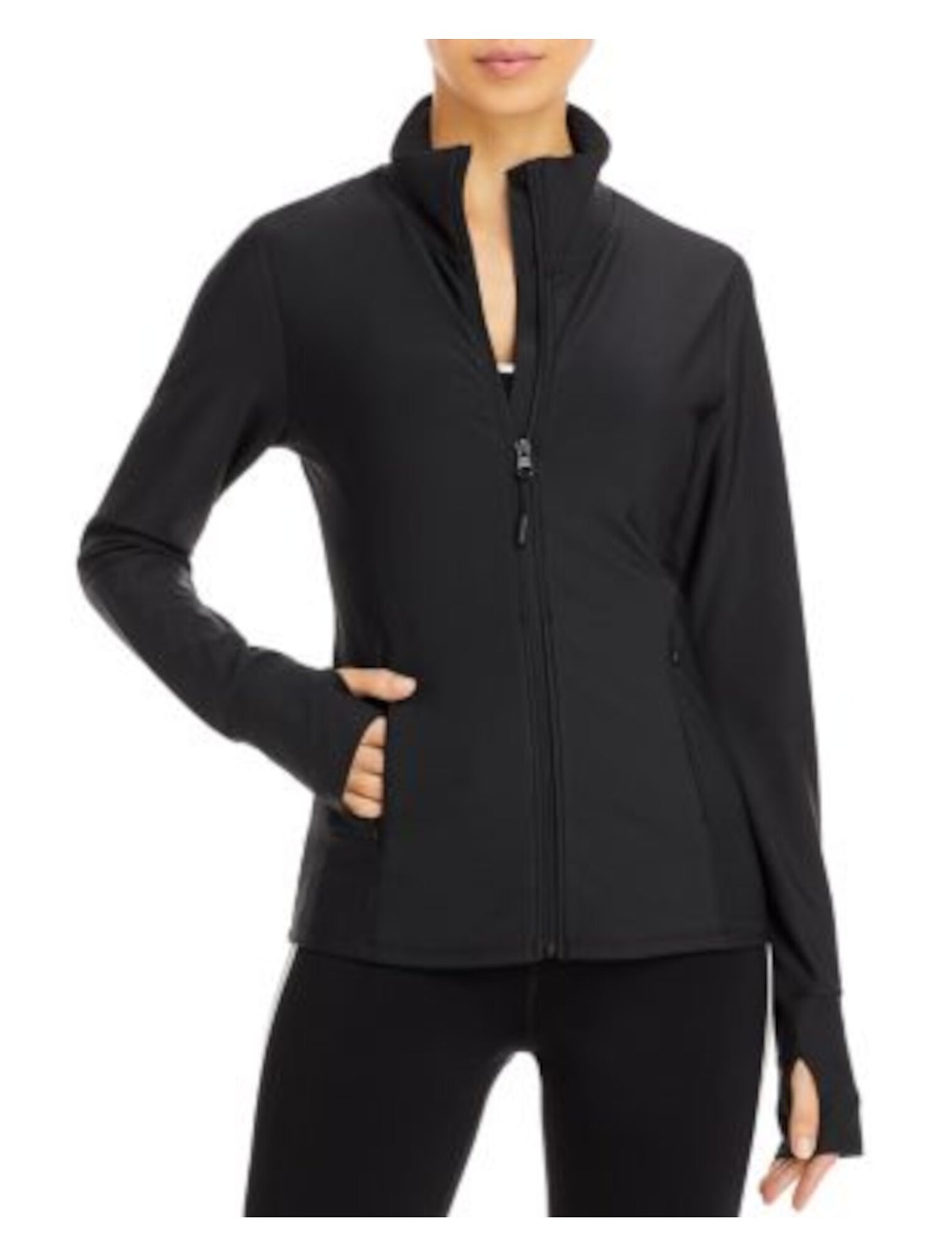 AQUA ATHLETIC Womens Black Pocketed Mock Neck Thumb Hole Cuffs Zip Up Jacket M