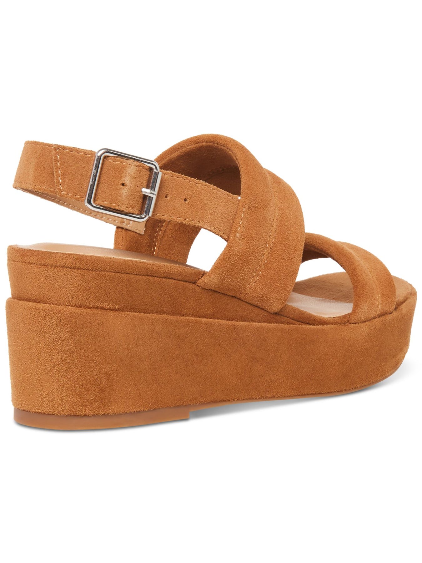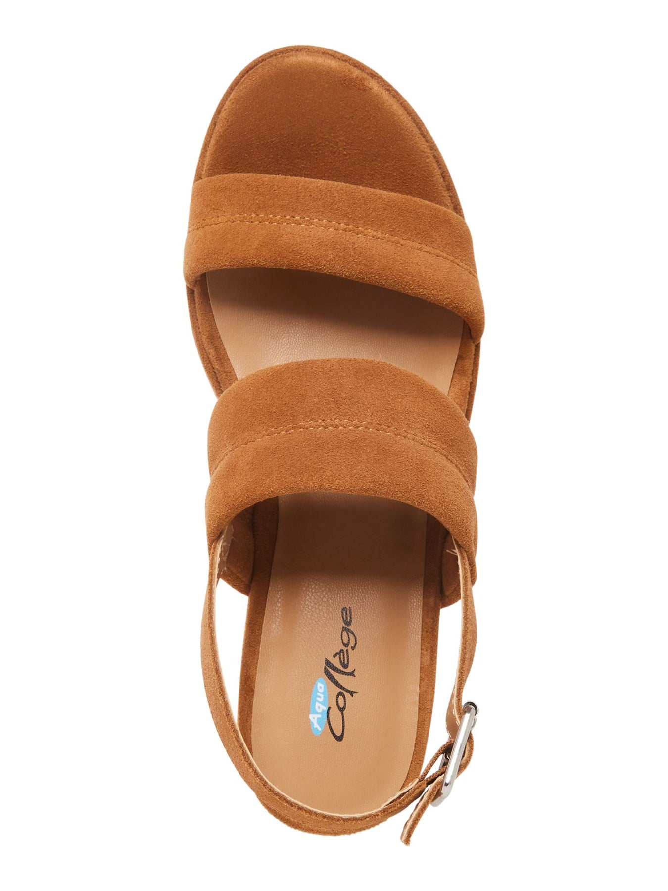 AQUA COLLEGE Womens Brown 1" Platform Padded Nuria Round Toe Wedge Buckle Leather Slingback Sandal