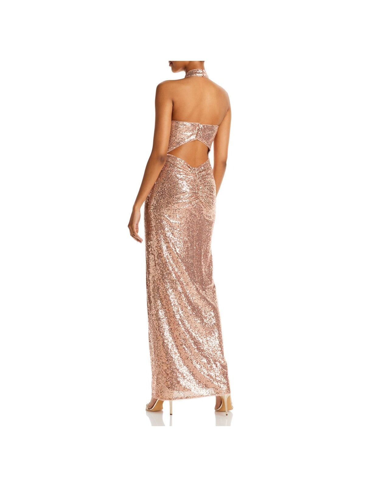AQUA FORMAL Womens Sequined Slitted Lined Sleeveless Halter Full-Length Formal Sheath Dress