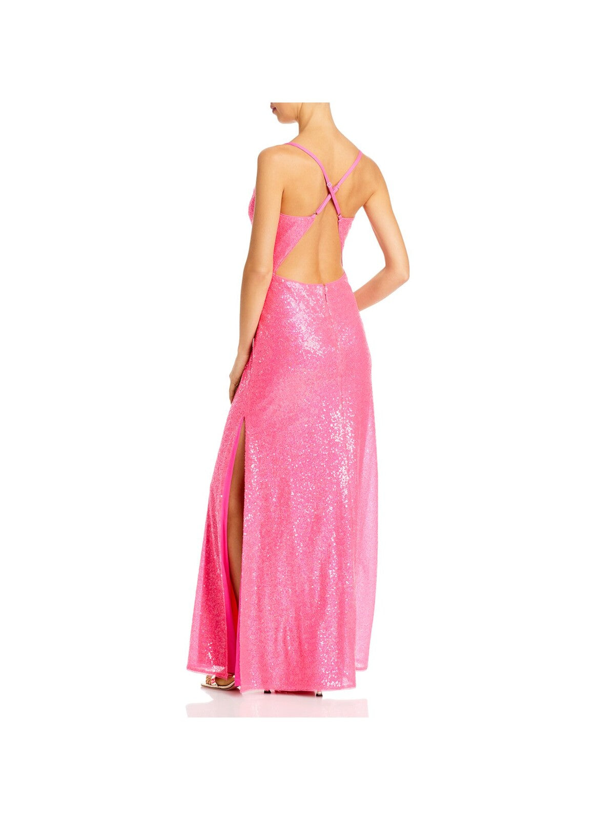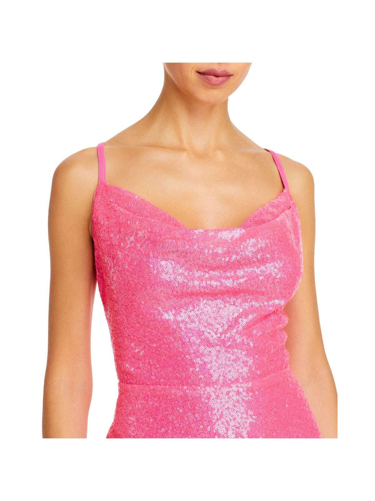 AQUA FORMAL Womens Pink Sequined Zippered Side Slit Lined Spaghetti Strap Cowl Neck Full-Length Prom Gown Dress XS