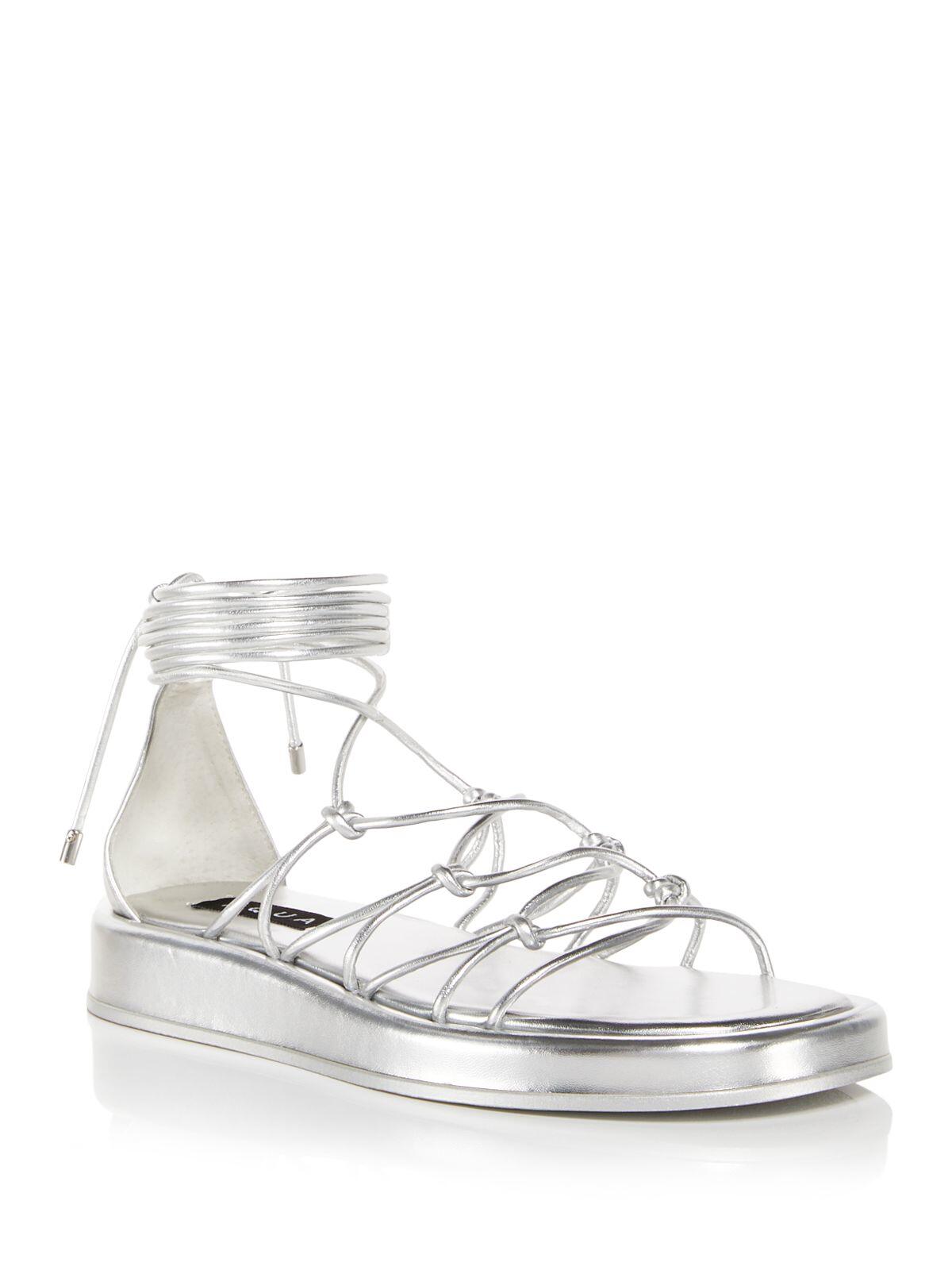 Womens Silver Ankle Wrap Strappy Padded Stars Open Toe Wedge Lace-Up Gladiator Sandals Shoes M