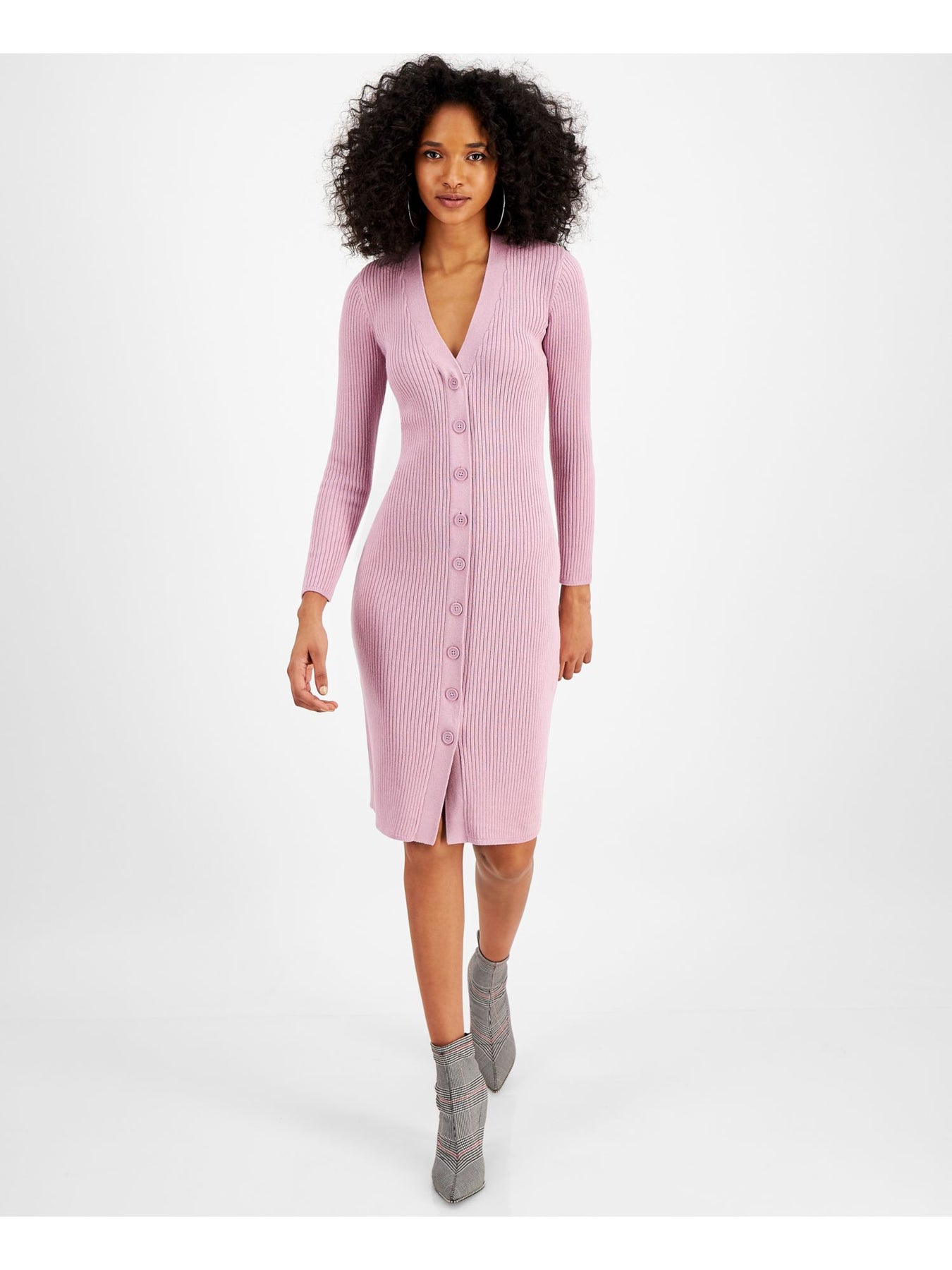 Womens Ribbed Long Sleeve V Neck Below The Knee Party Sweater Dress