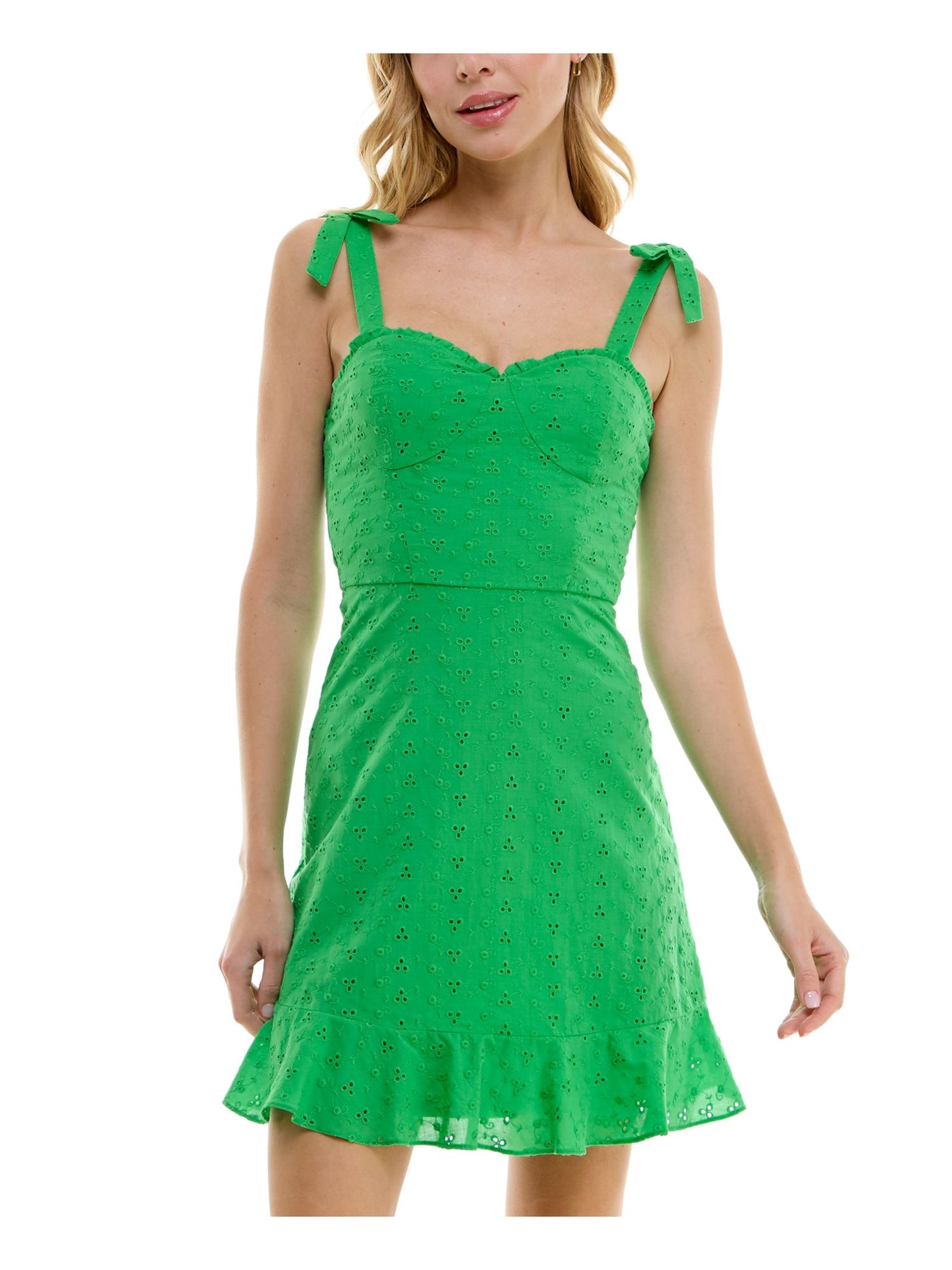 BCX DRESS Womens Green Zippered Ruffled Smocked Back Bow Accents Lined Sleeveless Sweetheart Neckline Mini Party Fit + Flare Dress
