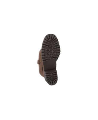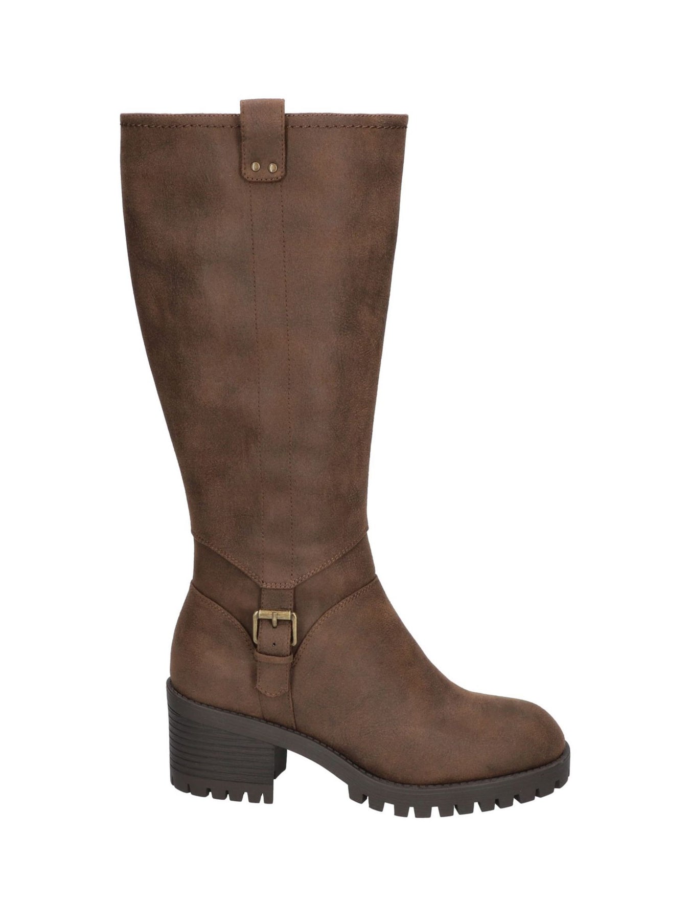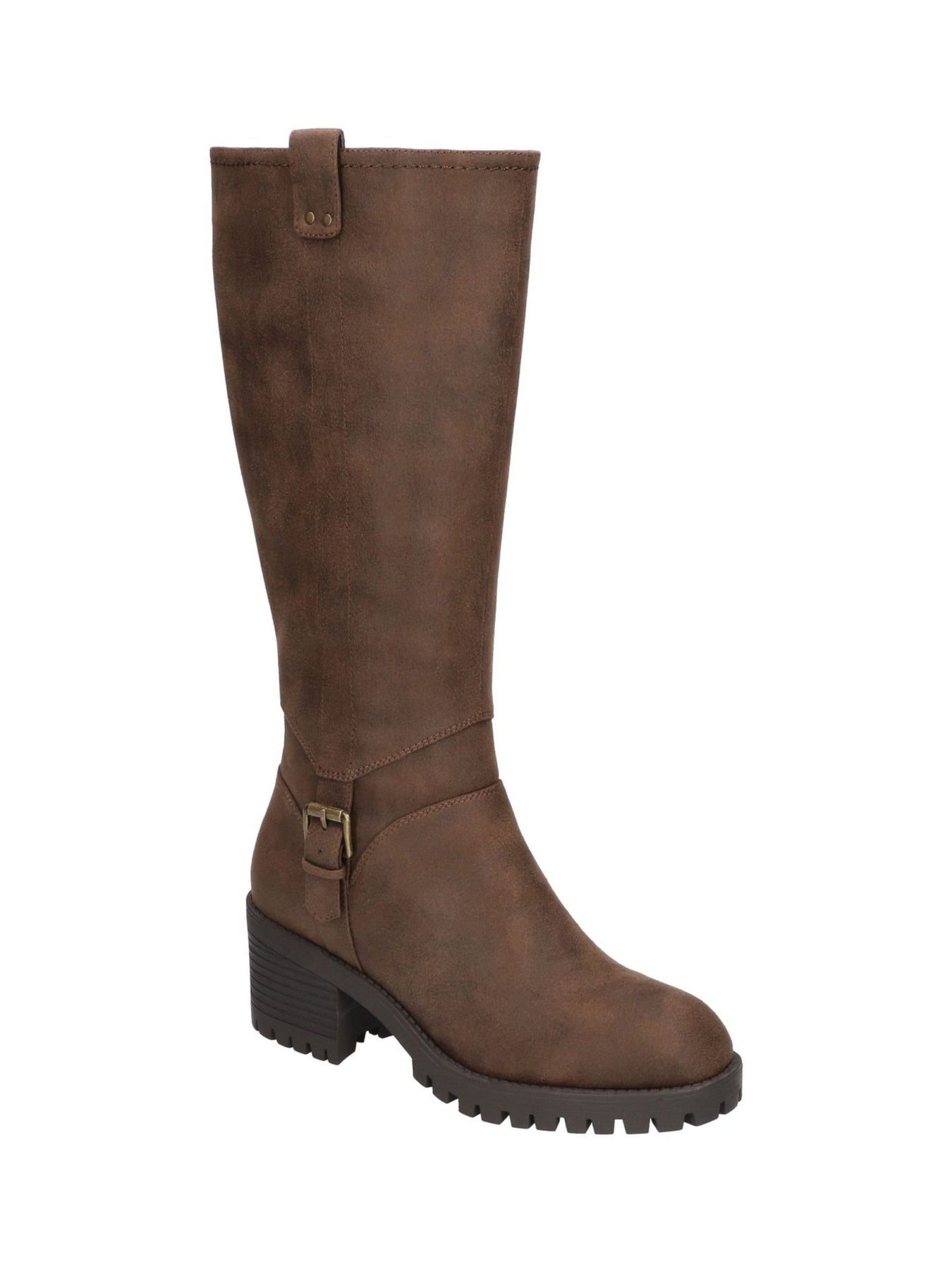 Womens Brown Goring Buckled Strap Side Pull-Tab Lug Sole Padded Lorielle Round Toe Block Heel Zip-Up Boots Shoes M