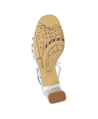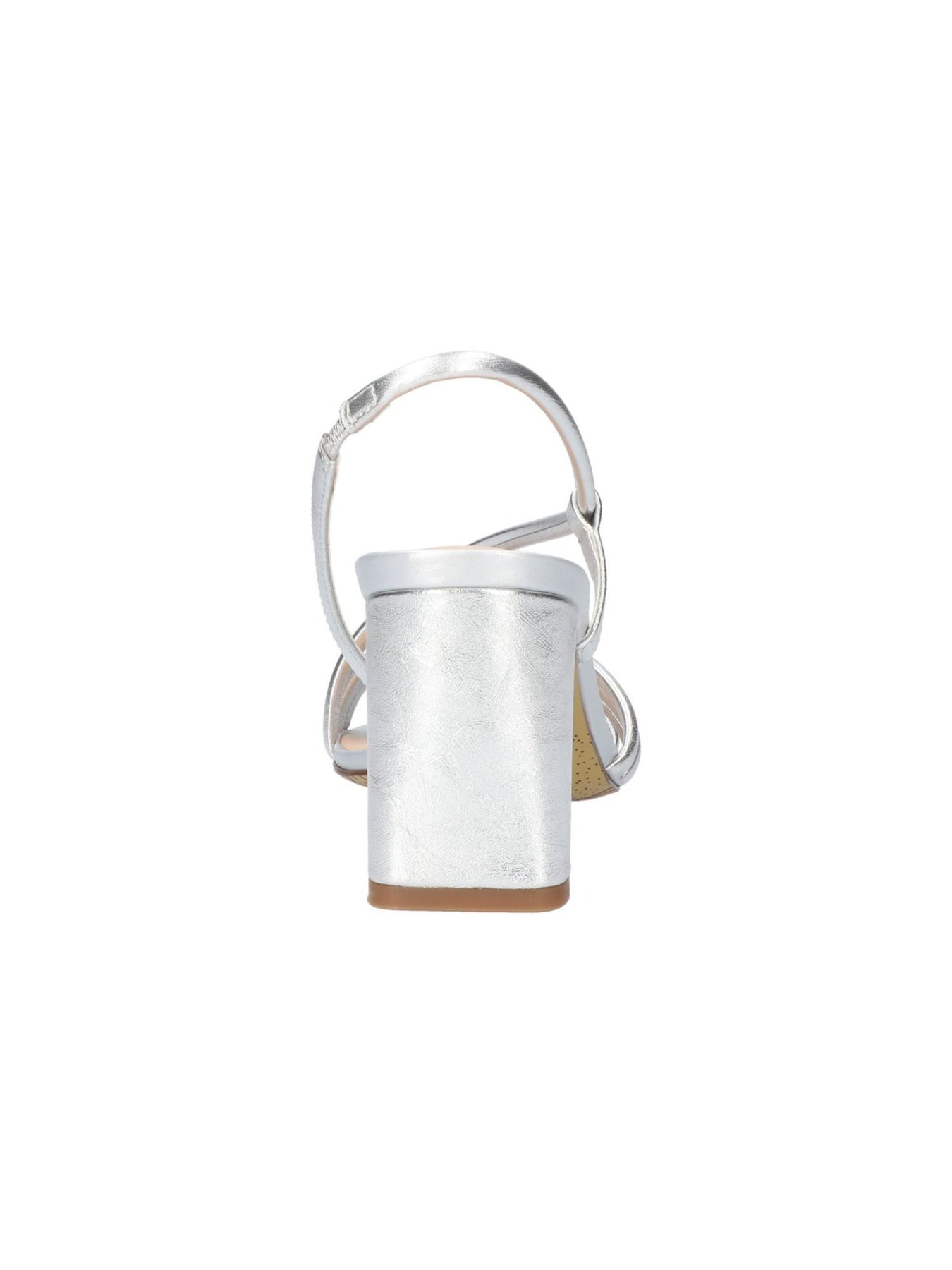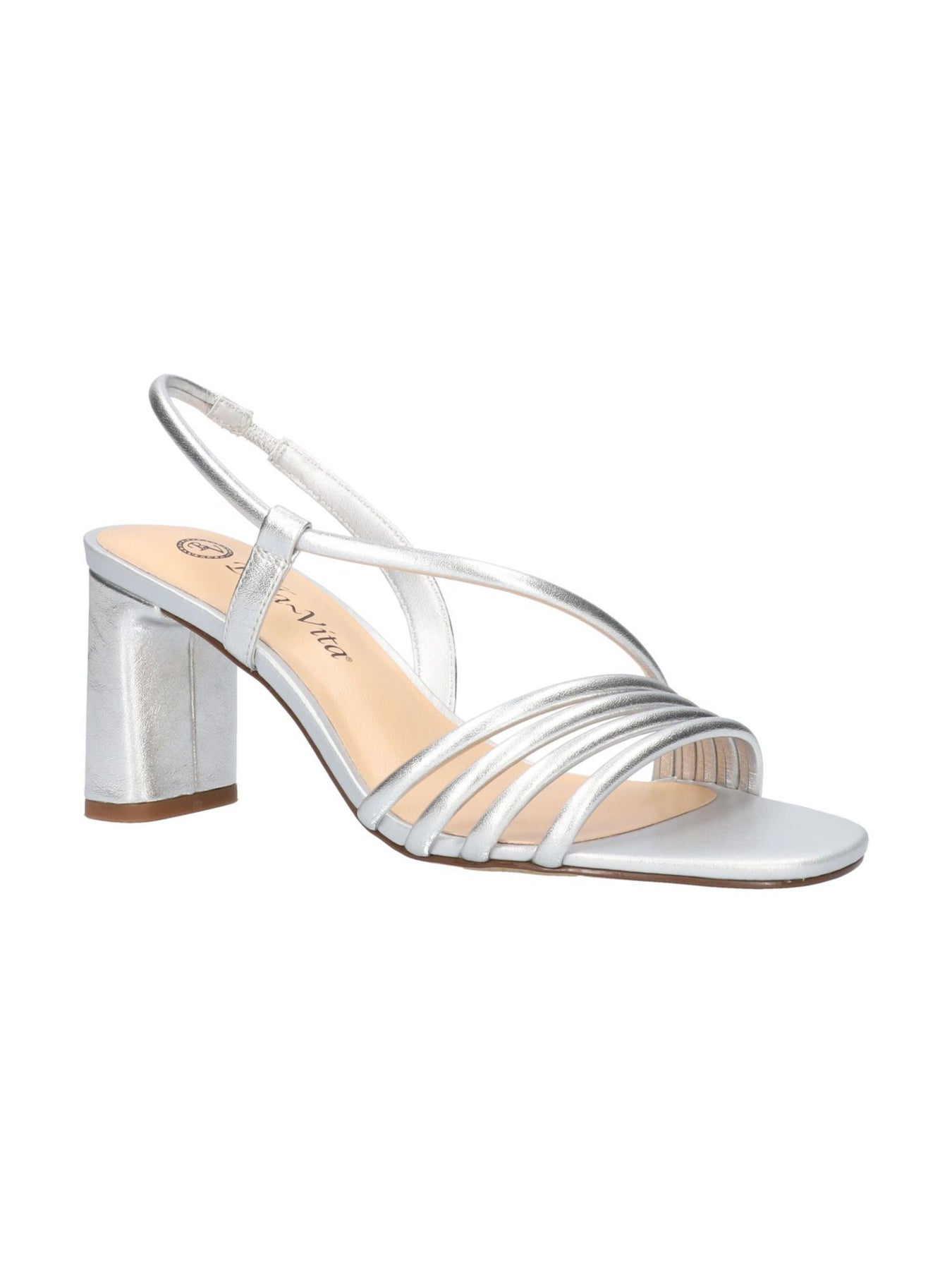 Womens Silver Elastic Goring Asymmetrical Cushioned Strappy Zariah Round Toe Block Heel Slip On Leather Slingback Sandal W