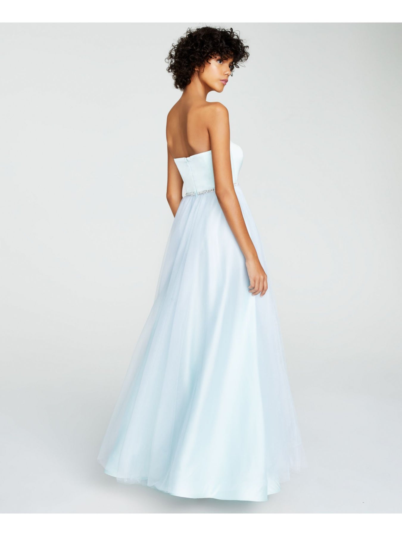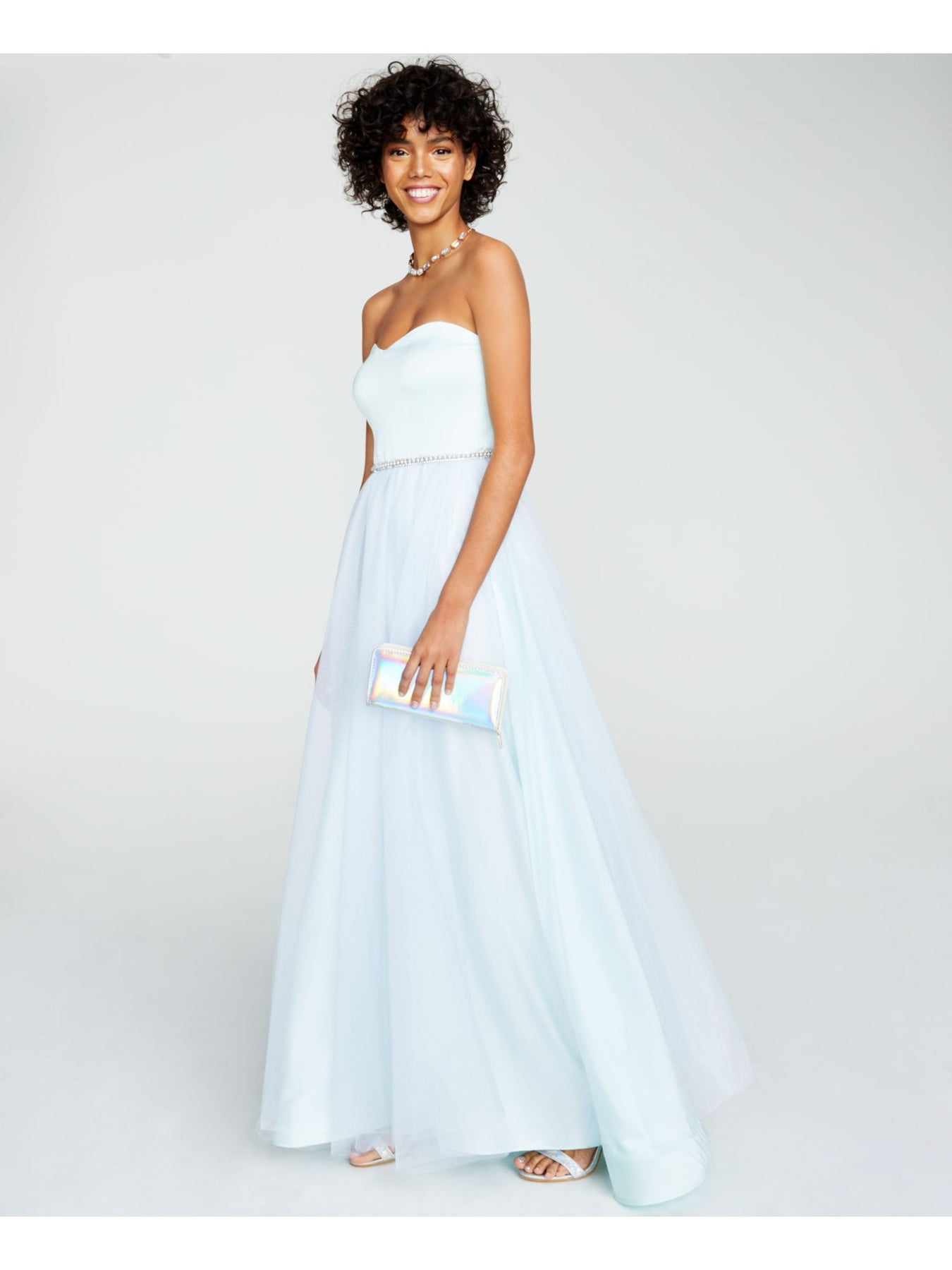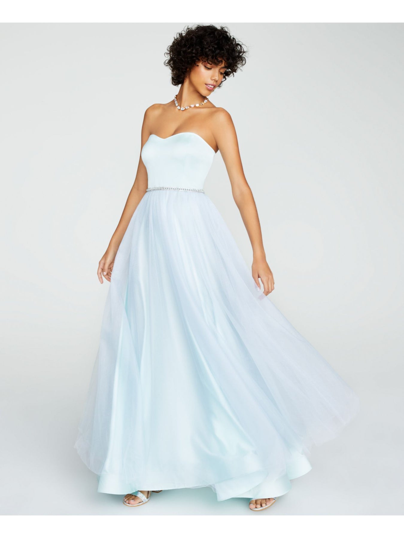 Womens Aqua Glitter Tulle Sleeveless Sweetheart Neckline Full-Length Prom Empire Waist Dress