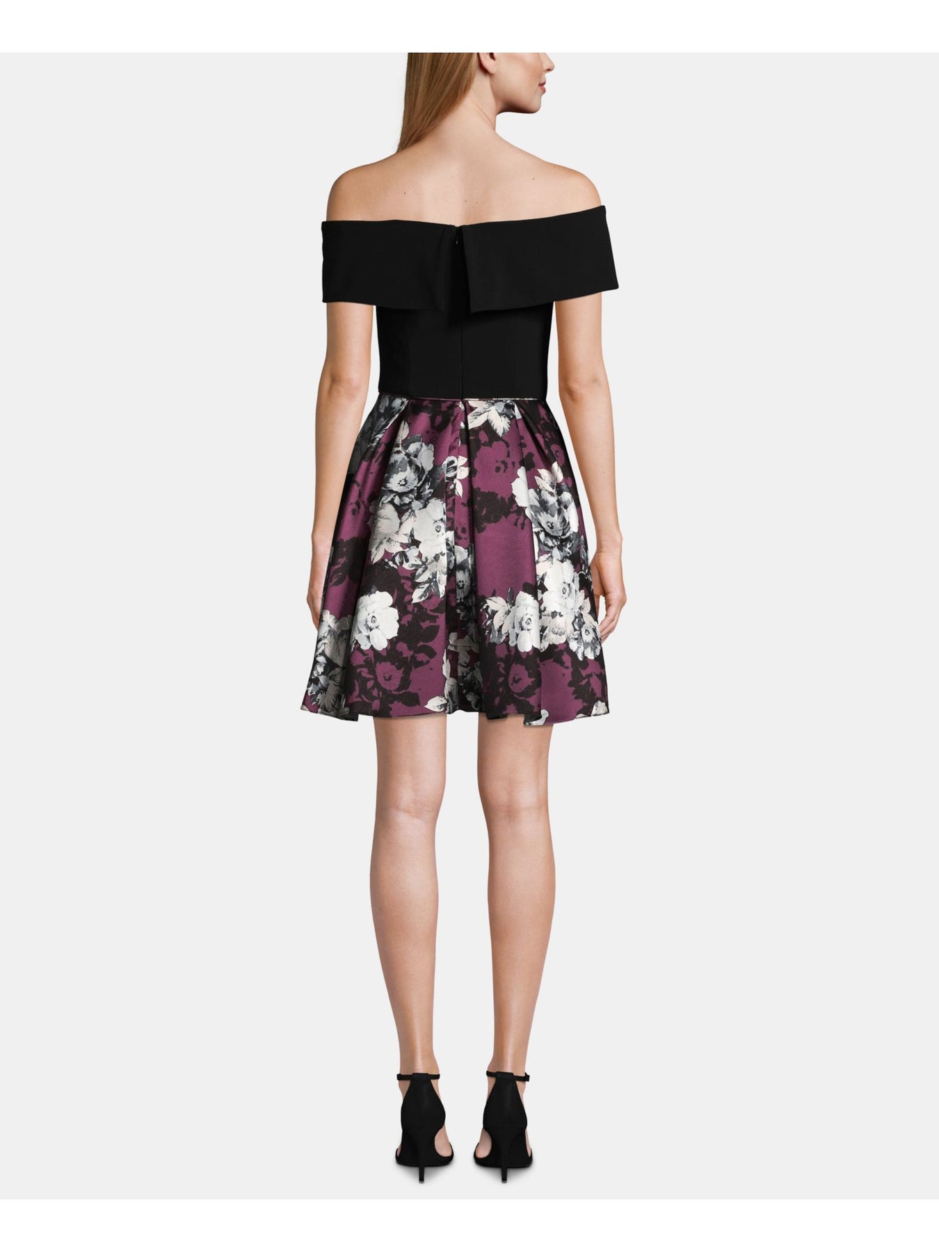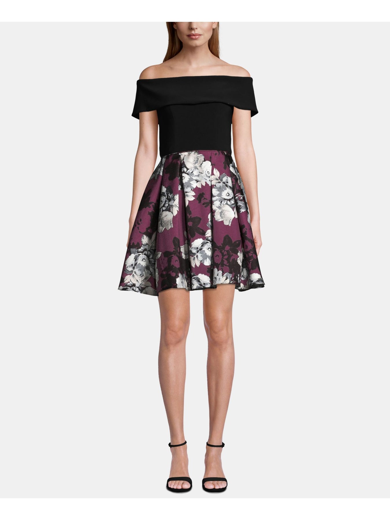 Womens Floral Short Sleeve Off Shoulder Mini Formal Fit + Flare Dress