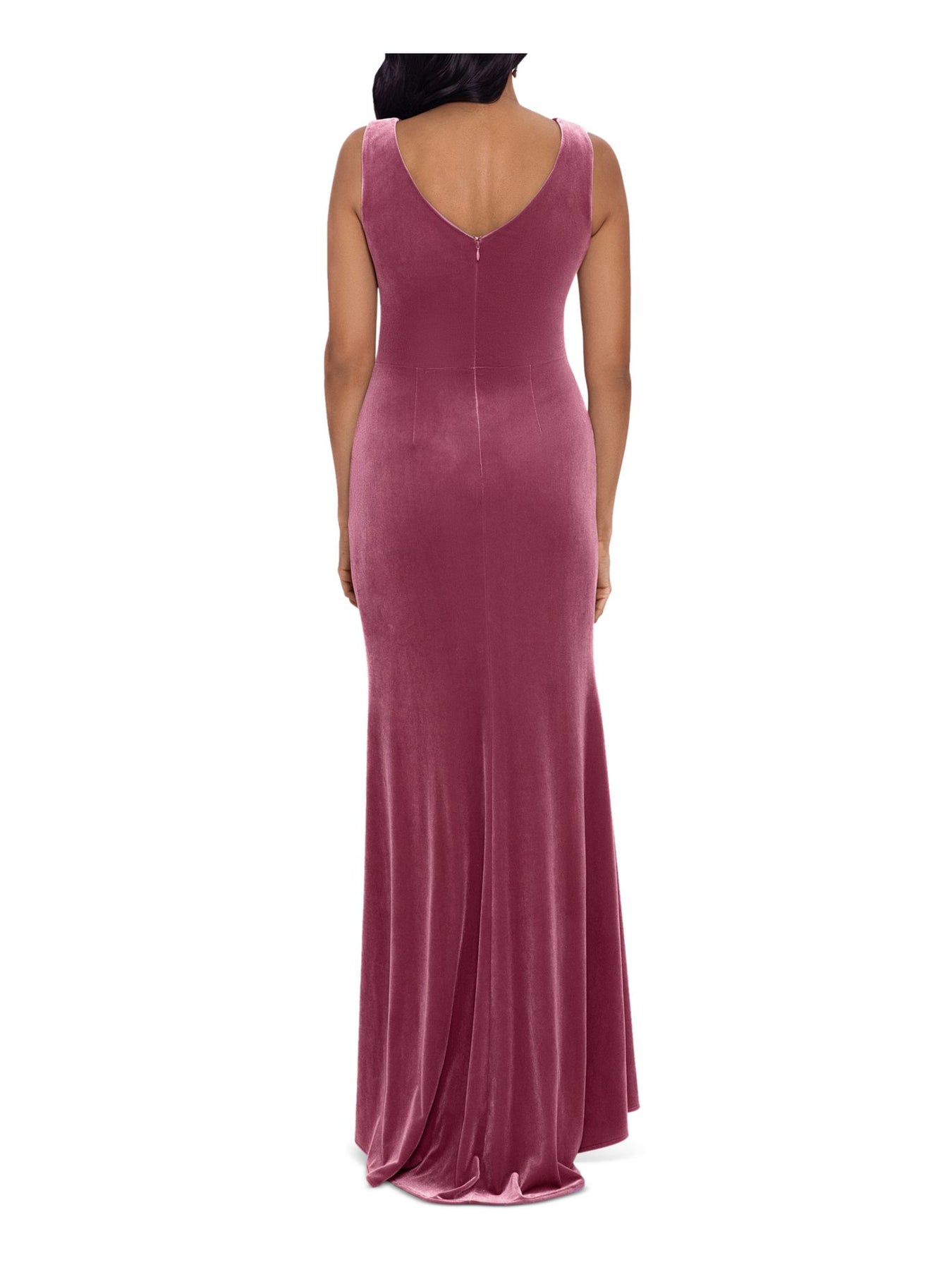 BETSY & ADAM Womens Pink Textured Zippered Slitted With Cascading Ruffle Sleeveless Scoop Neck Full-Length Evening Gown Dress 4