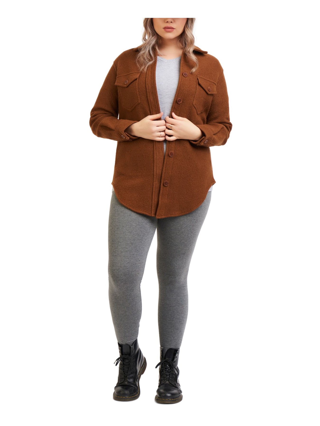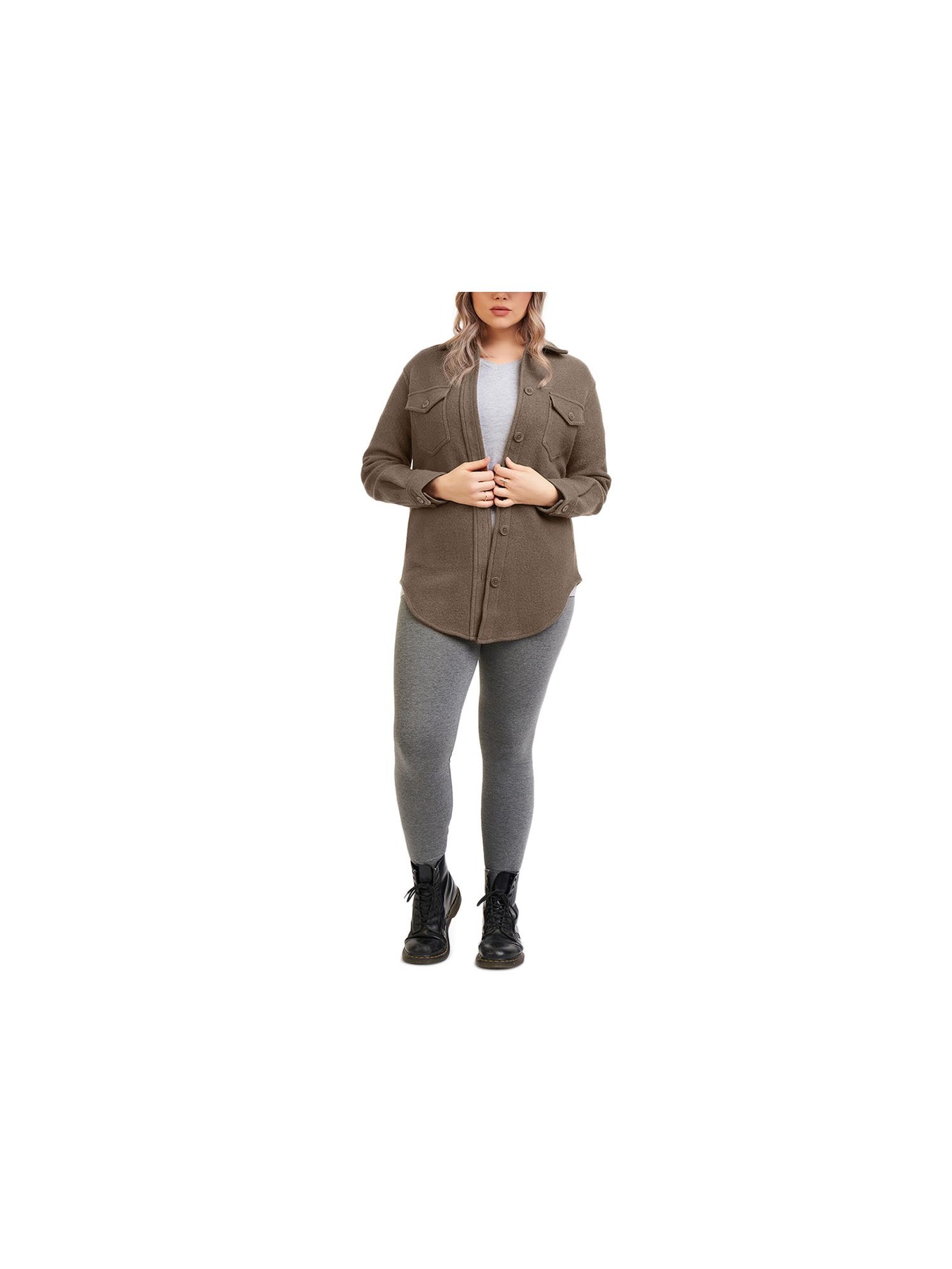 BLACK TAPE Womens Brown Pocketed Textured Cuffed Sleeve Collared Button Up Top Plus 1X