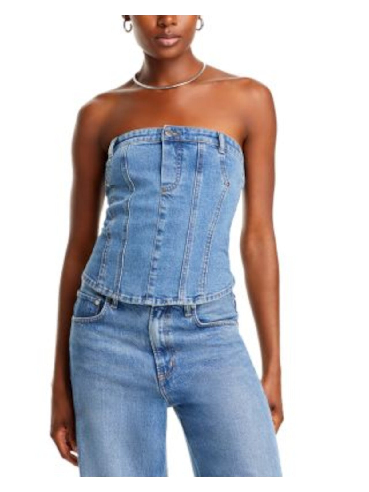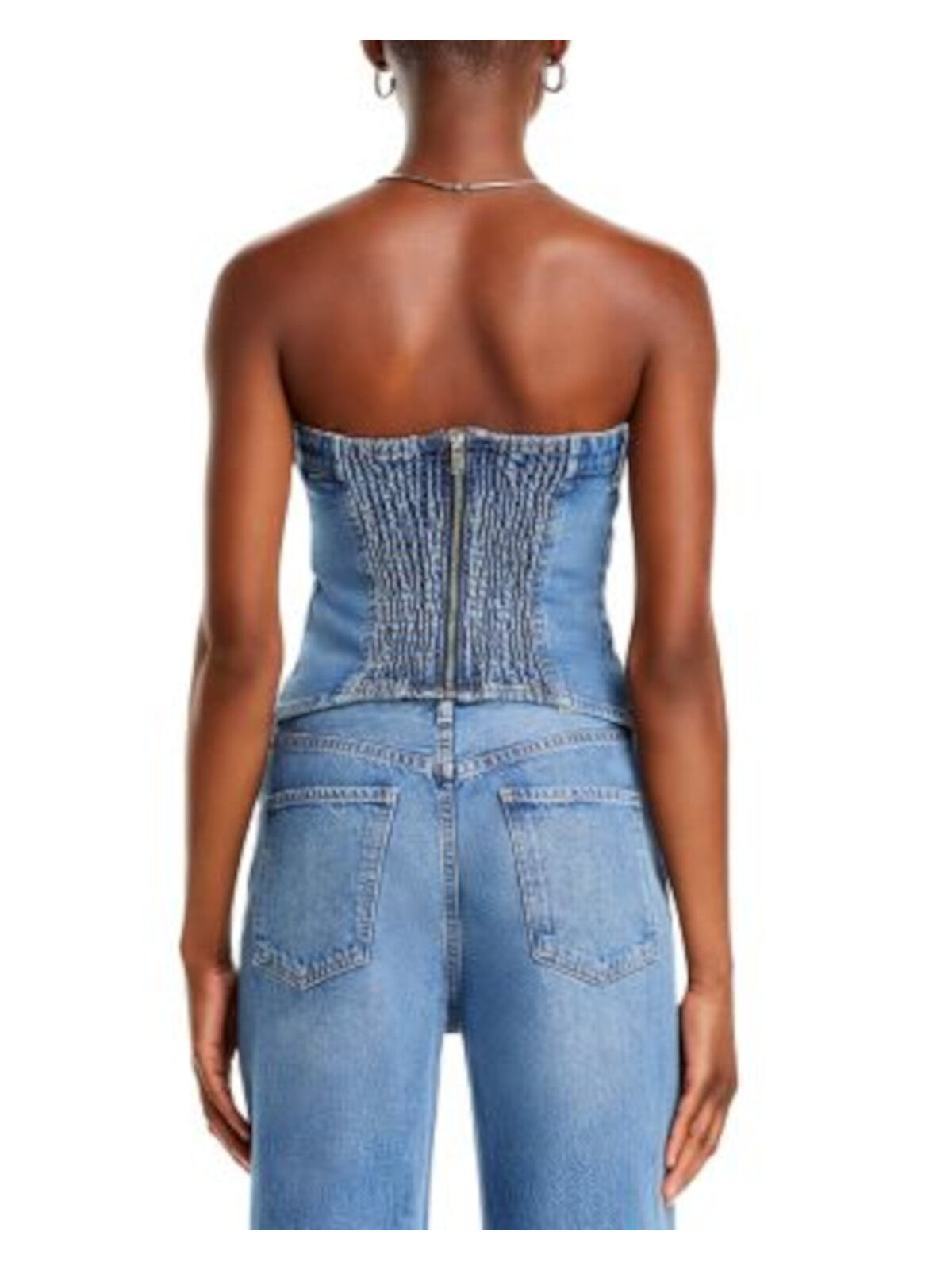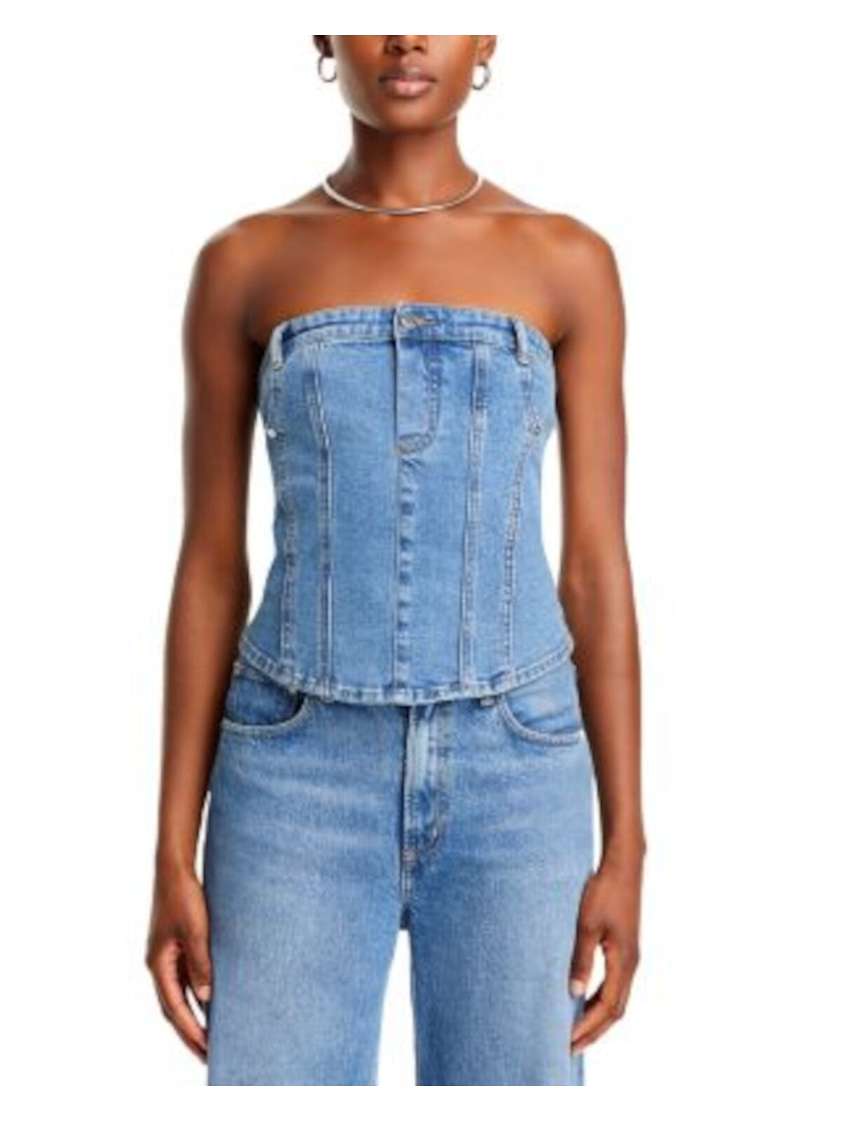 BLANK NYC Womens Blue Sleeveless Strapless Top S