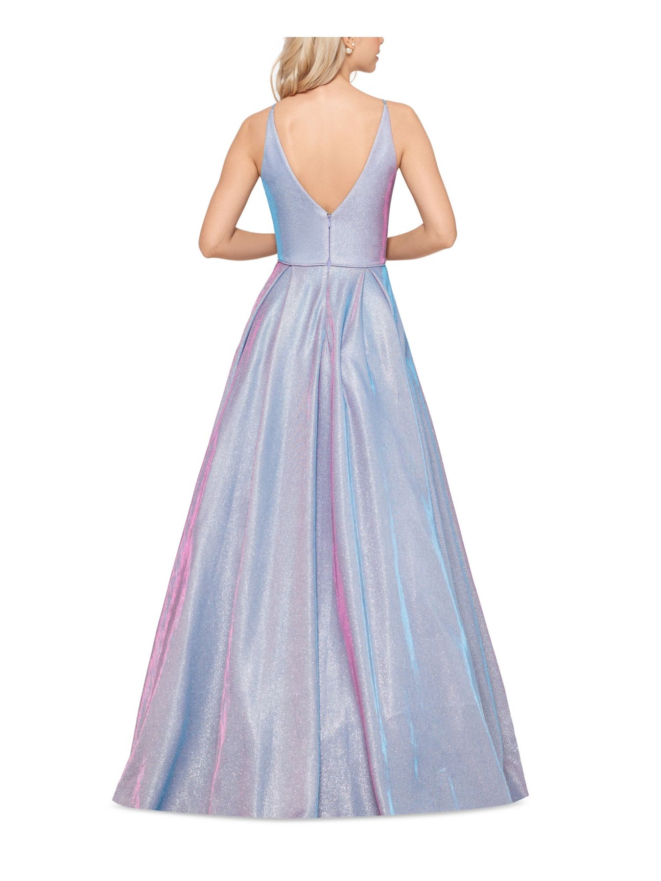 BLONDIE NITES Womens Light Blue Zippered Pleated Pocketed Lined Sleeveless V Neck Full-Length Formal Gown Dress 7