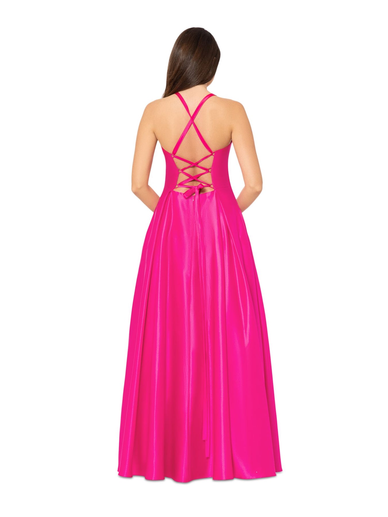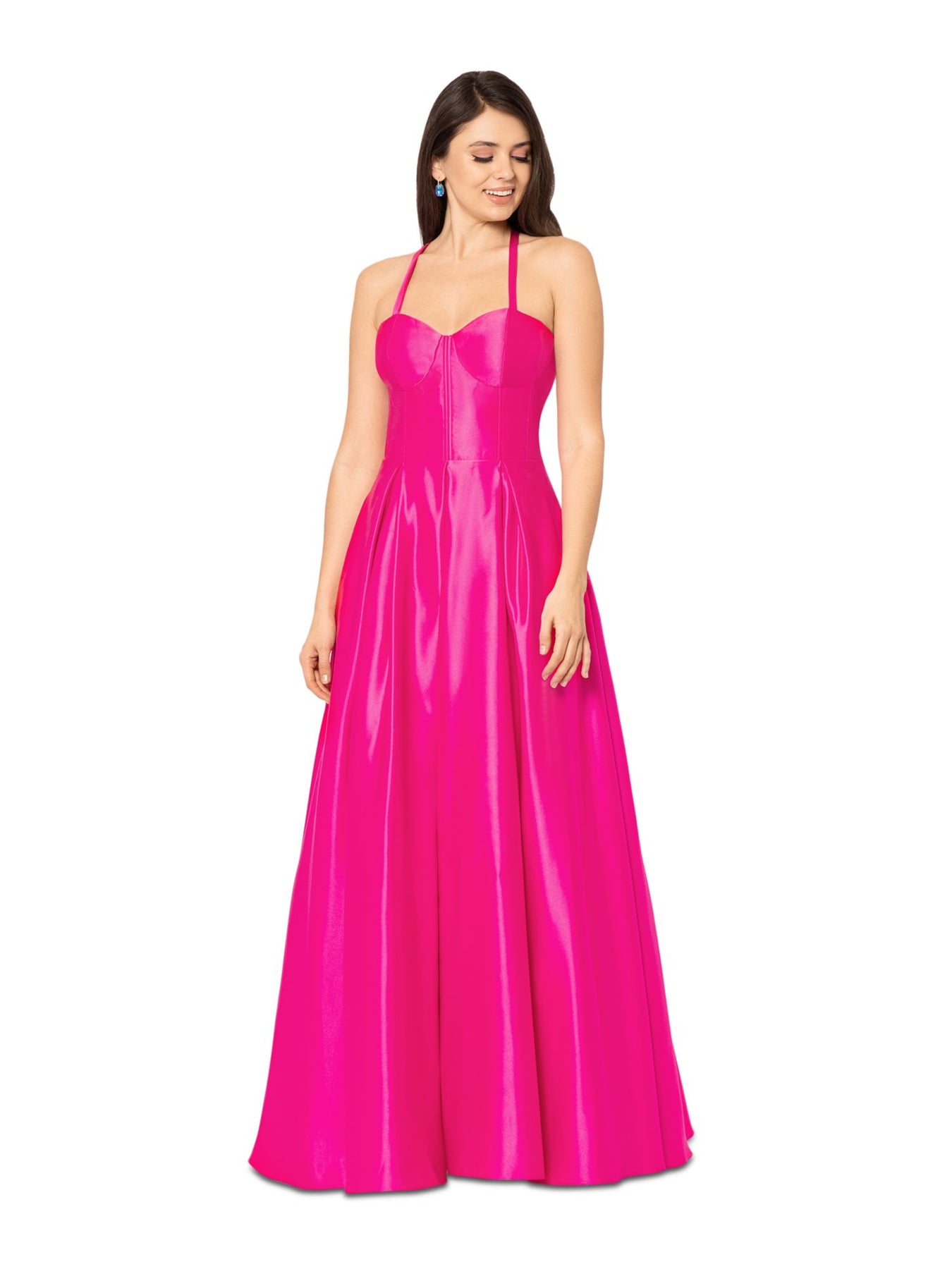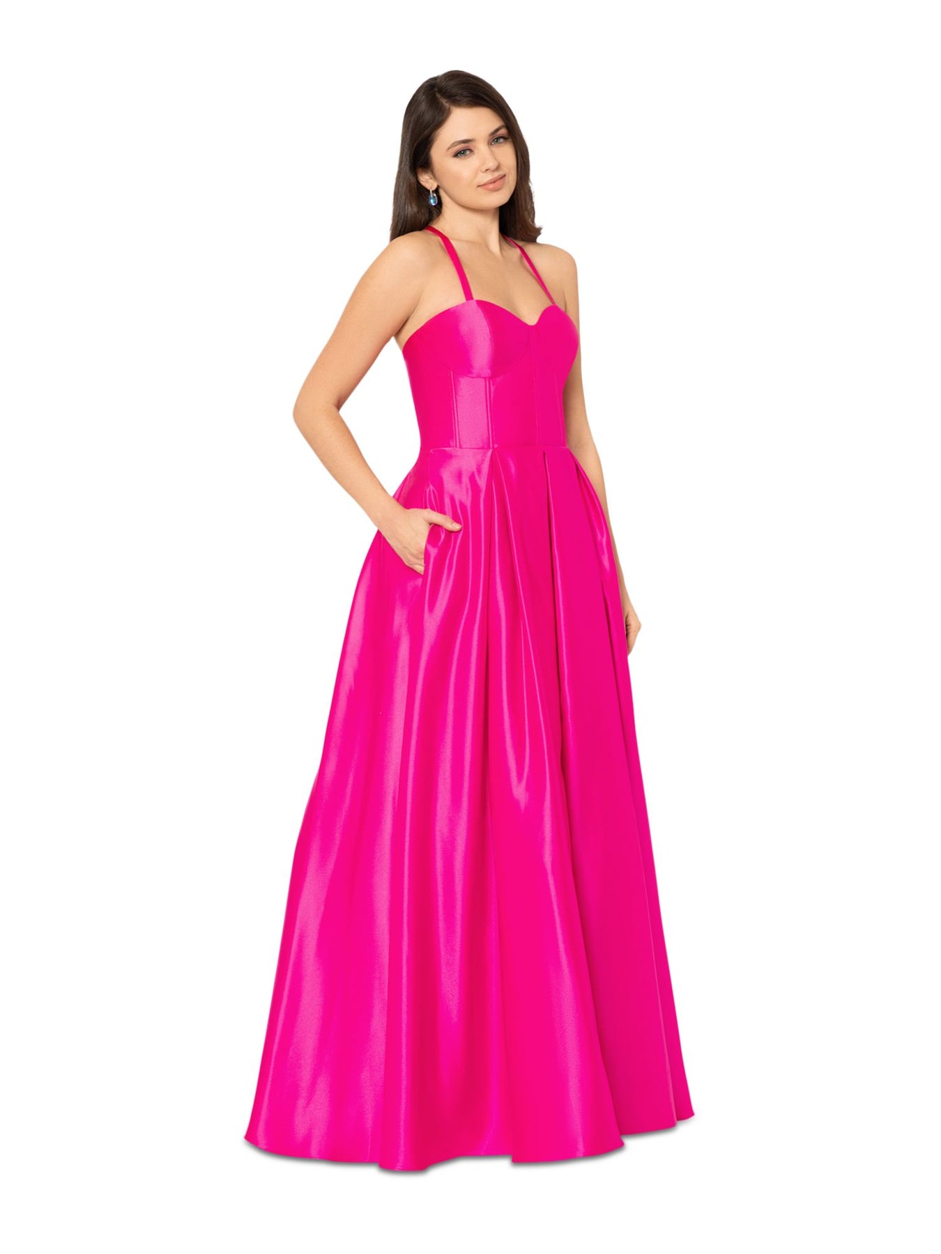 Womens Pink Zippered Pocketed Lace-up Corset Bodice Lined Sleeveless Sweetheart Neckline Full-Length Formal Gown Dress