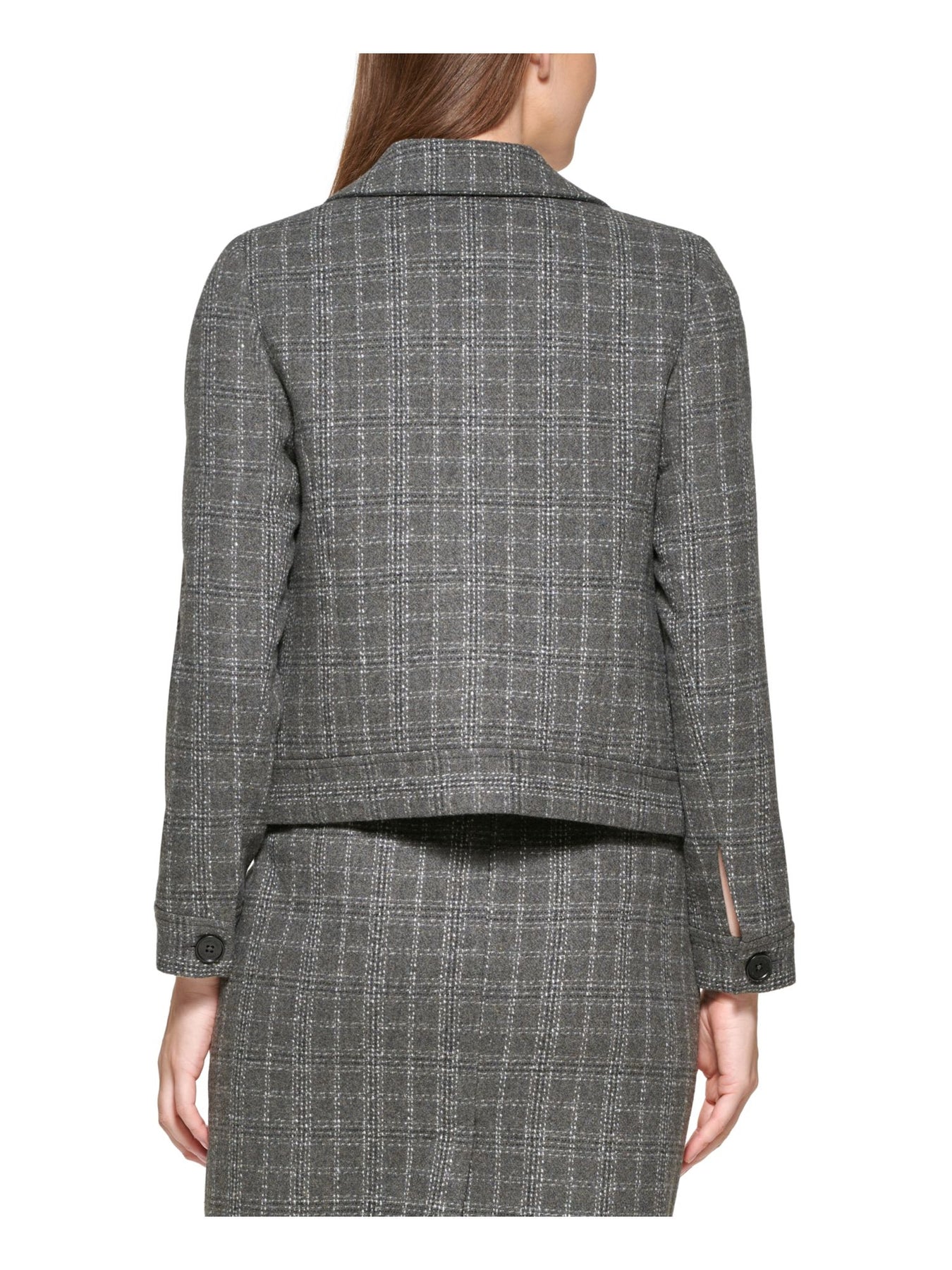 CALVIN KLEIN Womens Pocketed Plaid Wear To Work Jacket