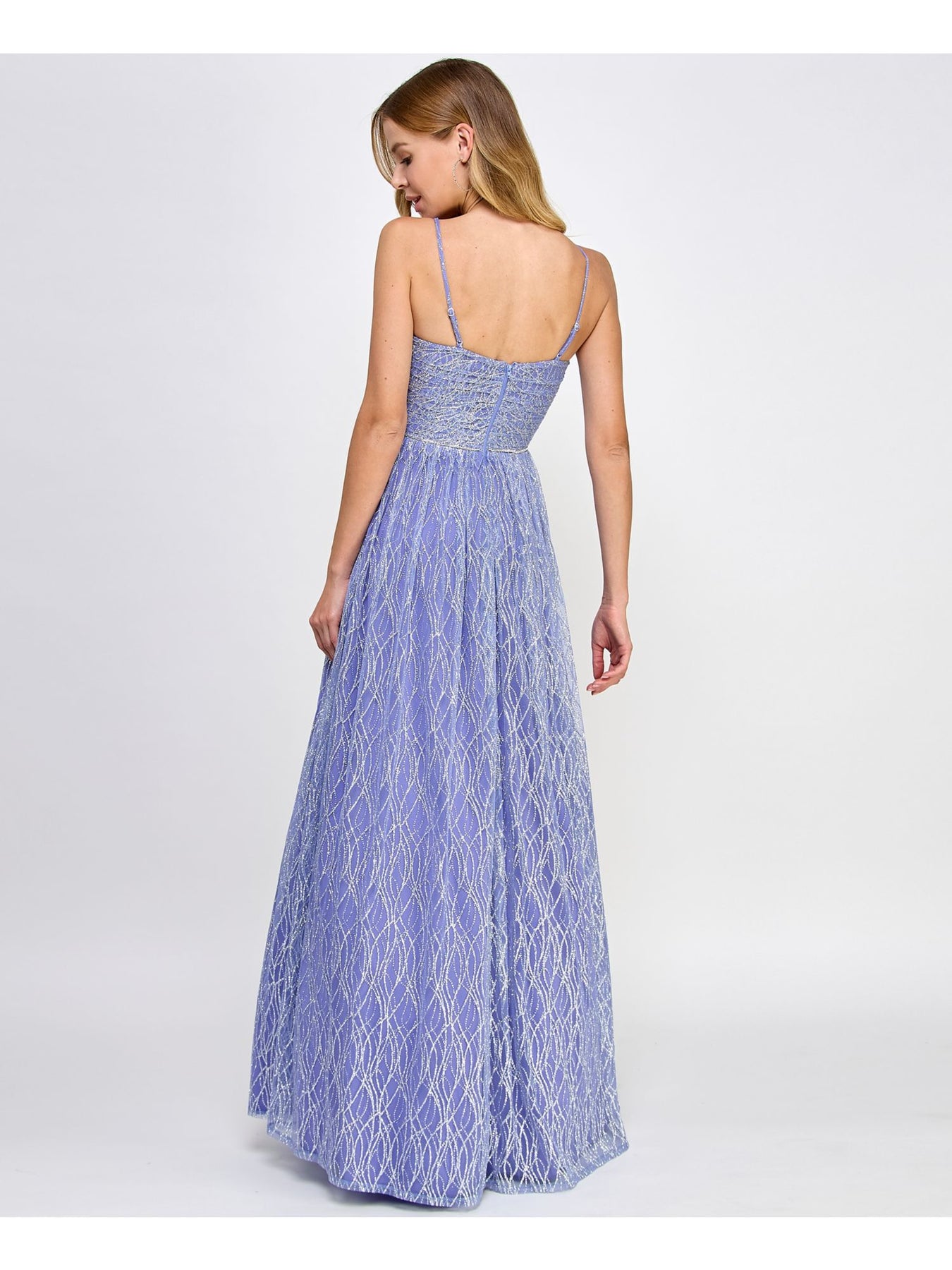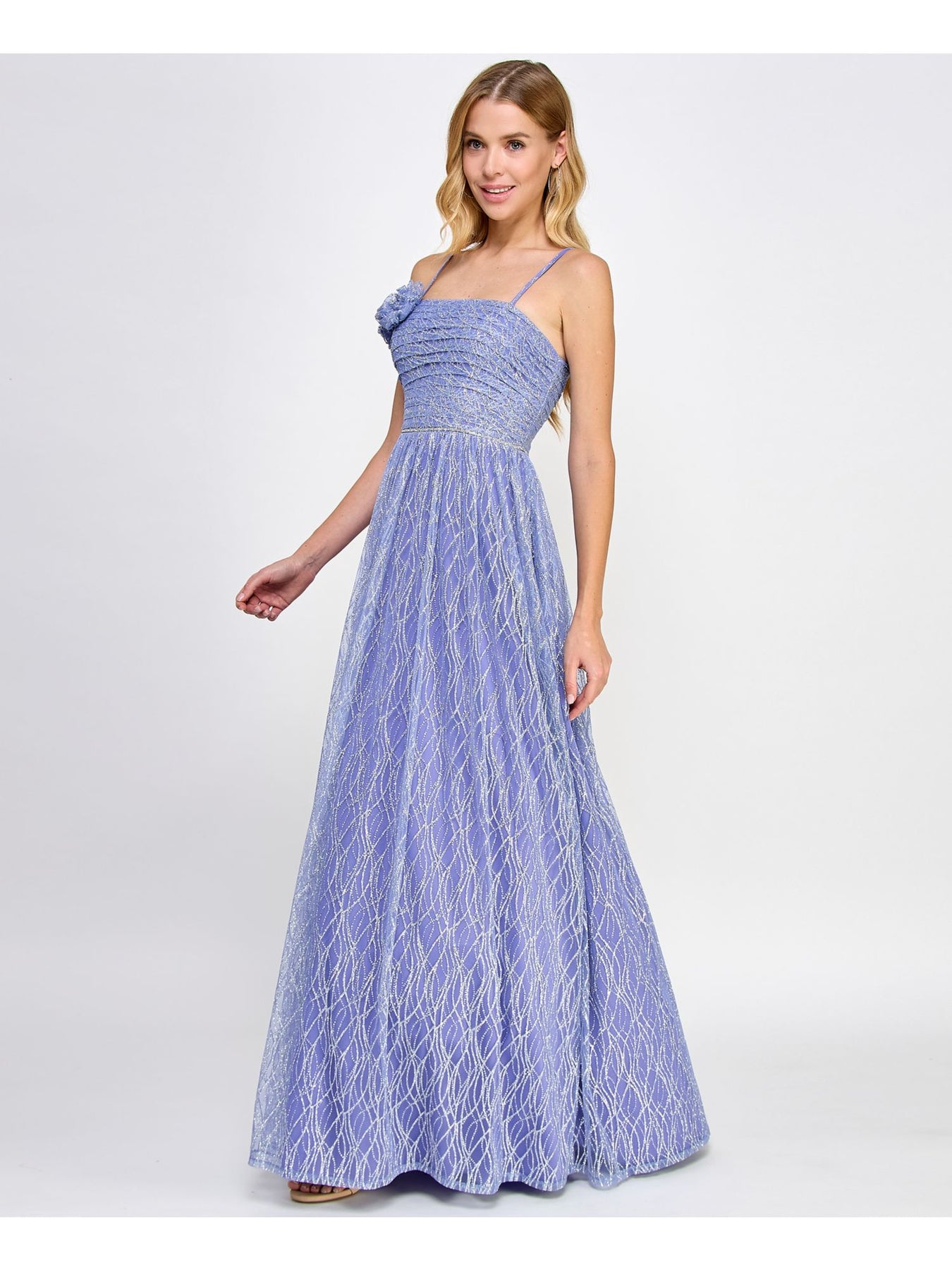 CITY STUDIO Womens Fit + Flare Full-Length Dress Light Blue Zippered Adjustable Sleeveless Square Neck Prom Solid Embellished Waist Glitter Mesh L Juniors 11\12