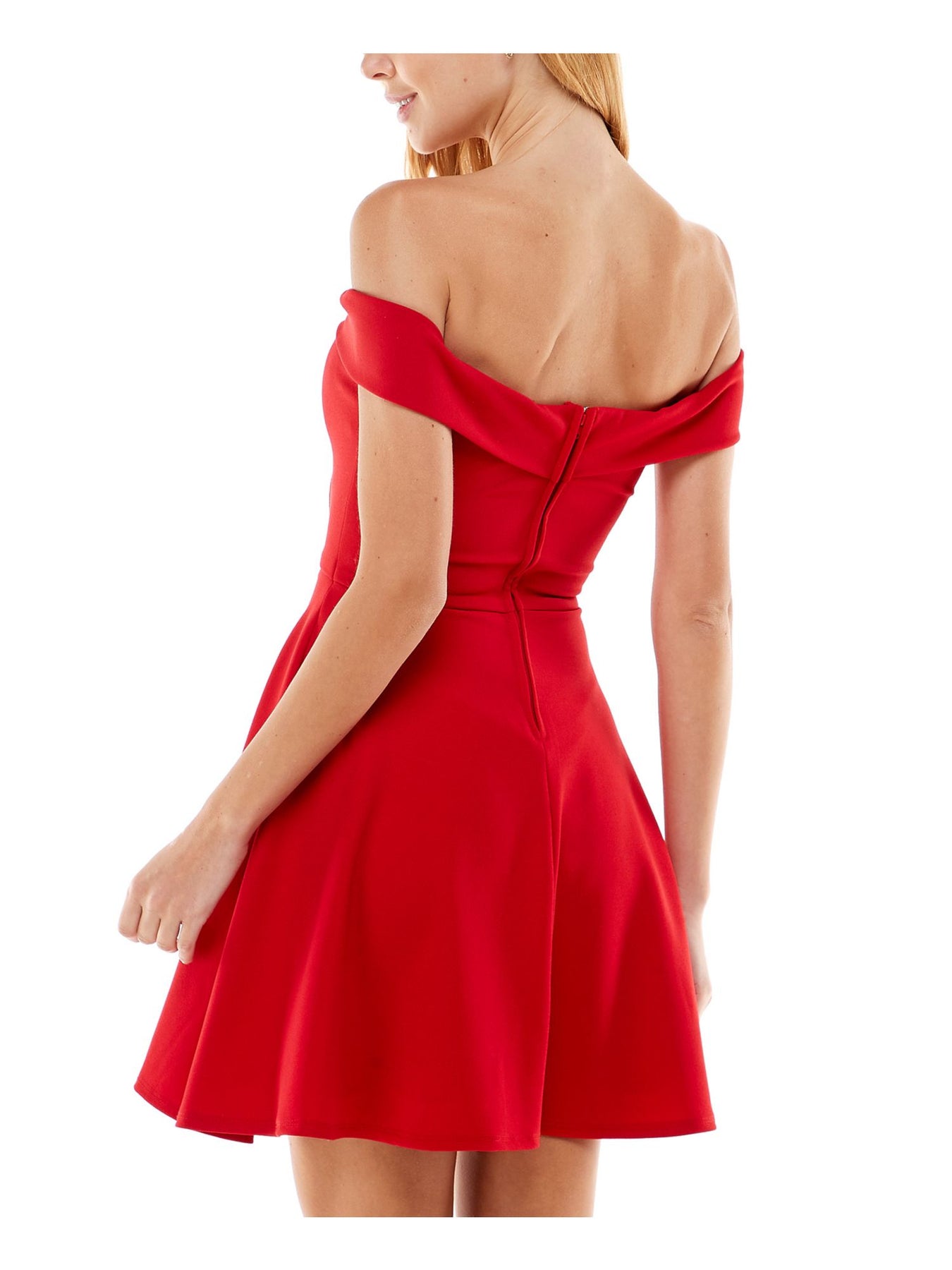 CITY STUDIO Womens Red Stretch Cut Out Zippered Lined Cap Sleeve Off Shoulder Short Cocktail Fit + Flare Dress 17