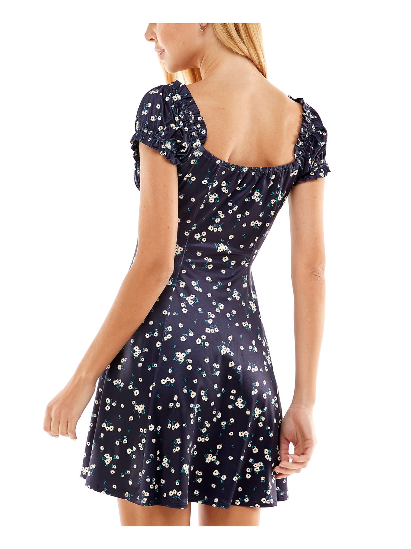 CITY STUDIO Womens Navy Tie Floral Short Sleeve Sweetheart Neckline Short Party Fit + Flare Dress XS
