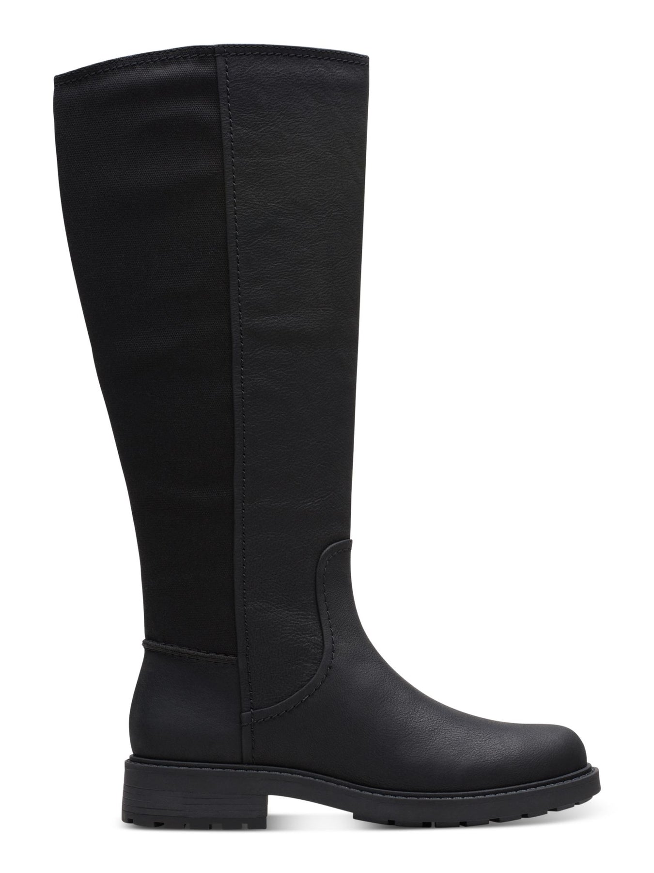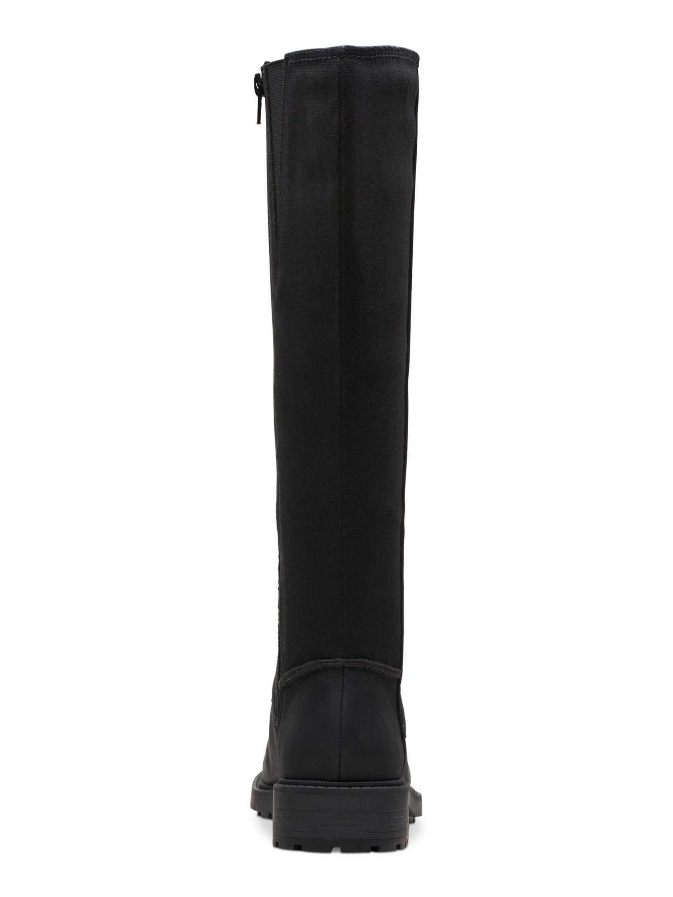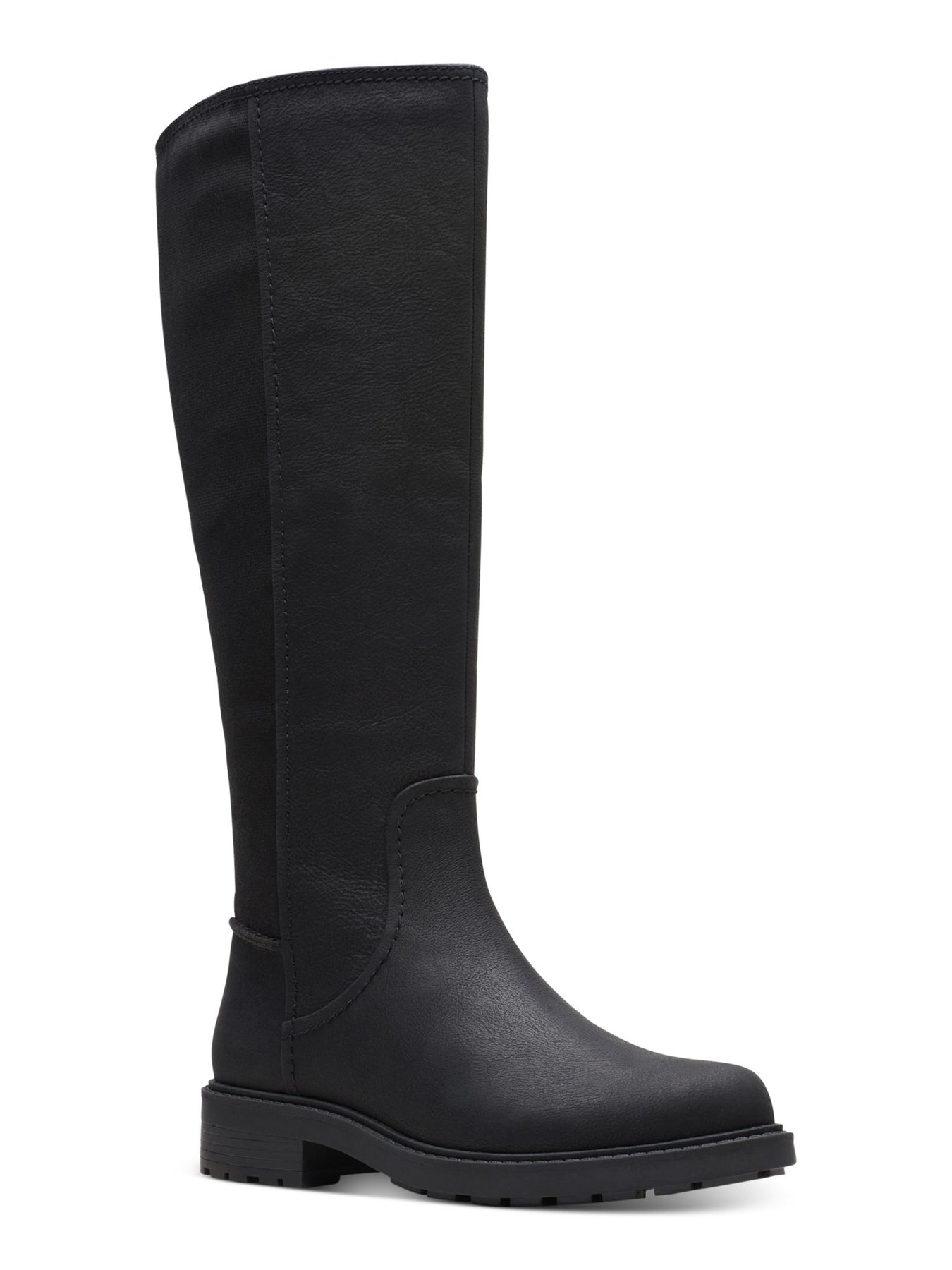 Womens Black Mixed Media Cushioned Slip Resistant Goring Opal Glow Round Toe Block Heel Zip-Up Leather Riding Boot M