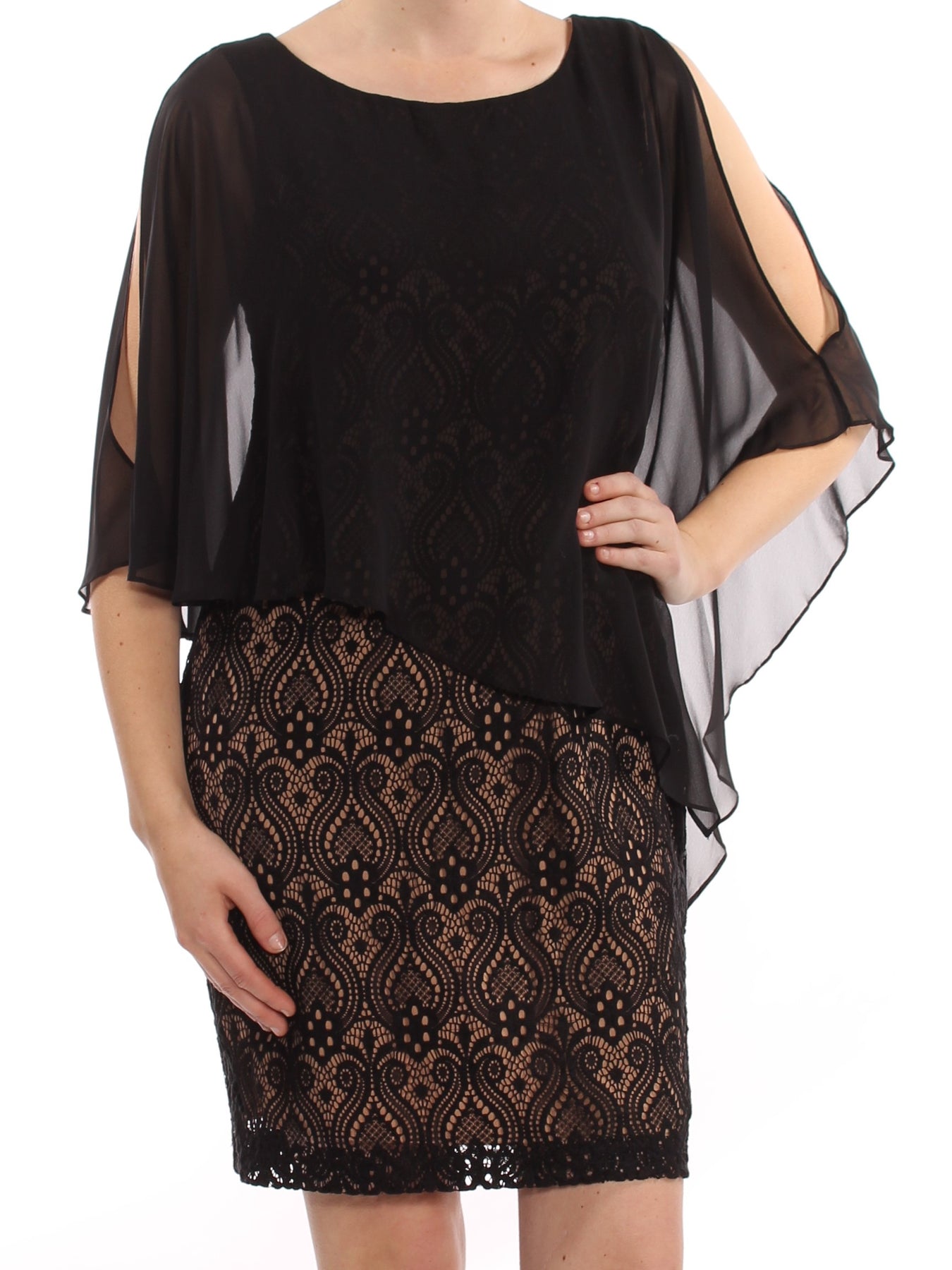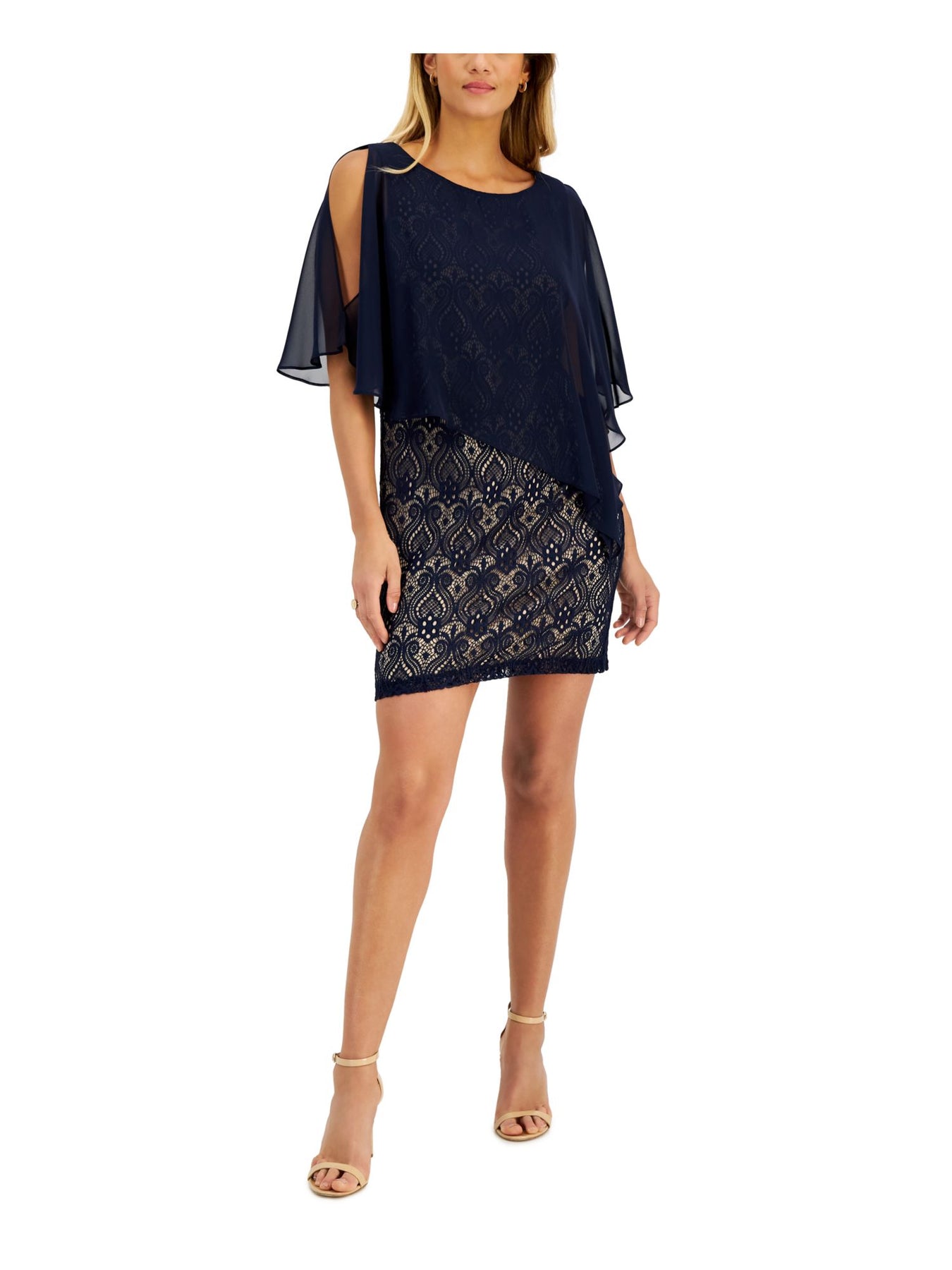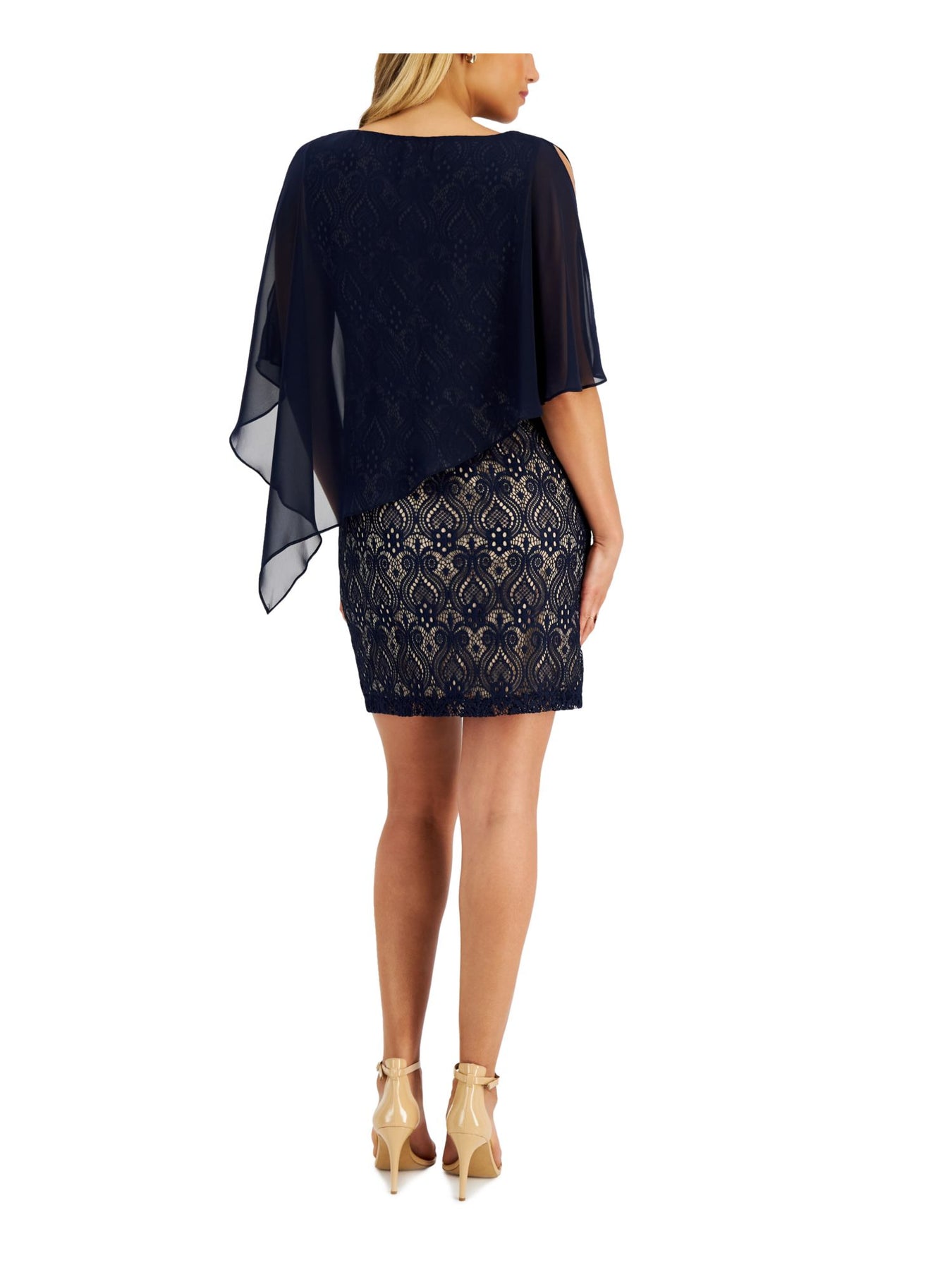 CONNECTED APPAREL Womens Beige Lace Sheer Cape Overlay Sleeveless Jewel Neck Above The Knee Cocktail Dress 4