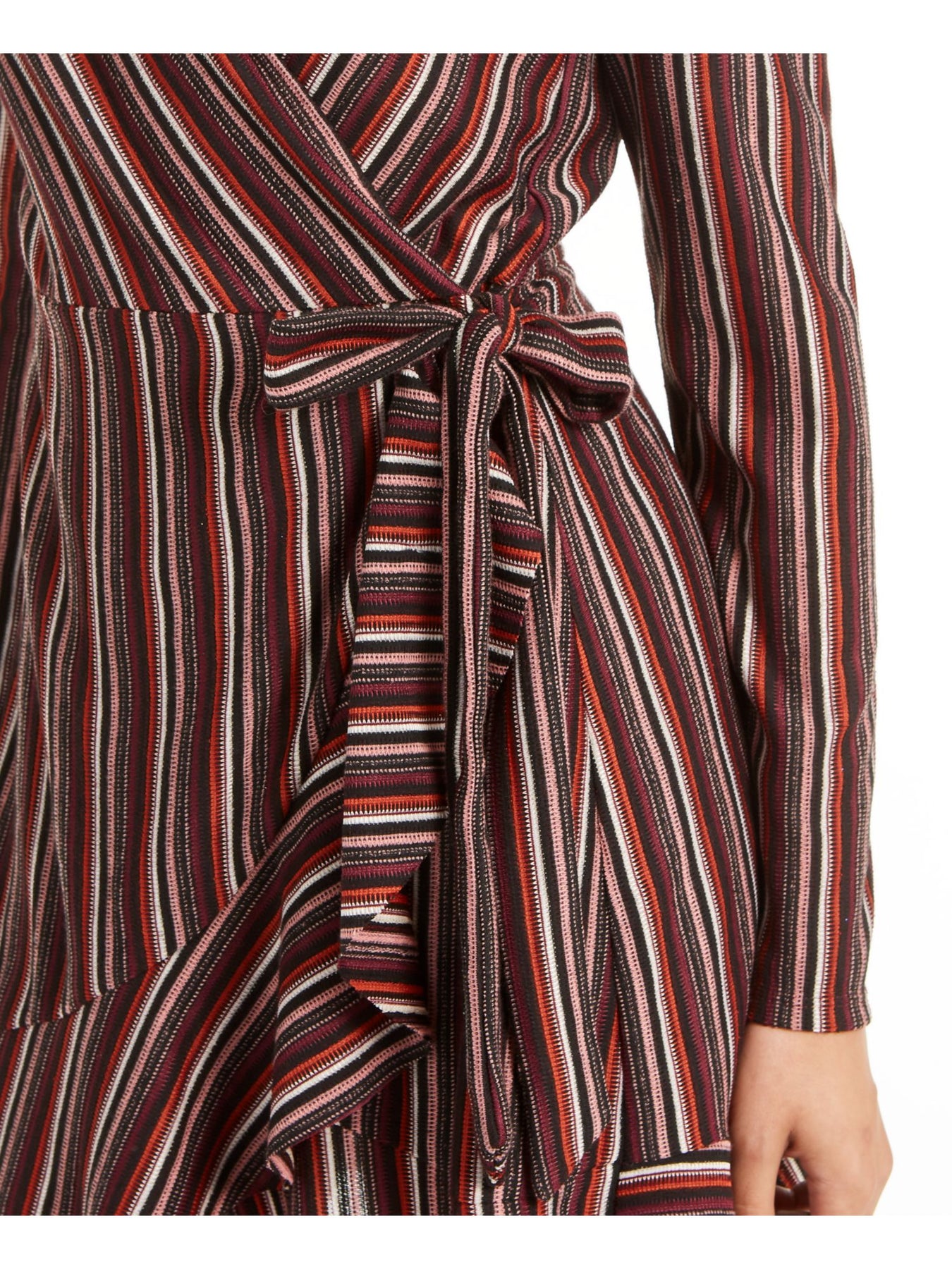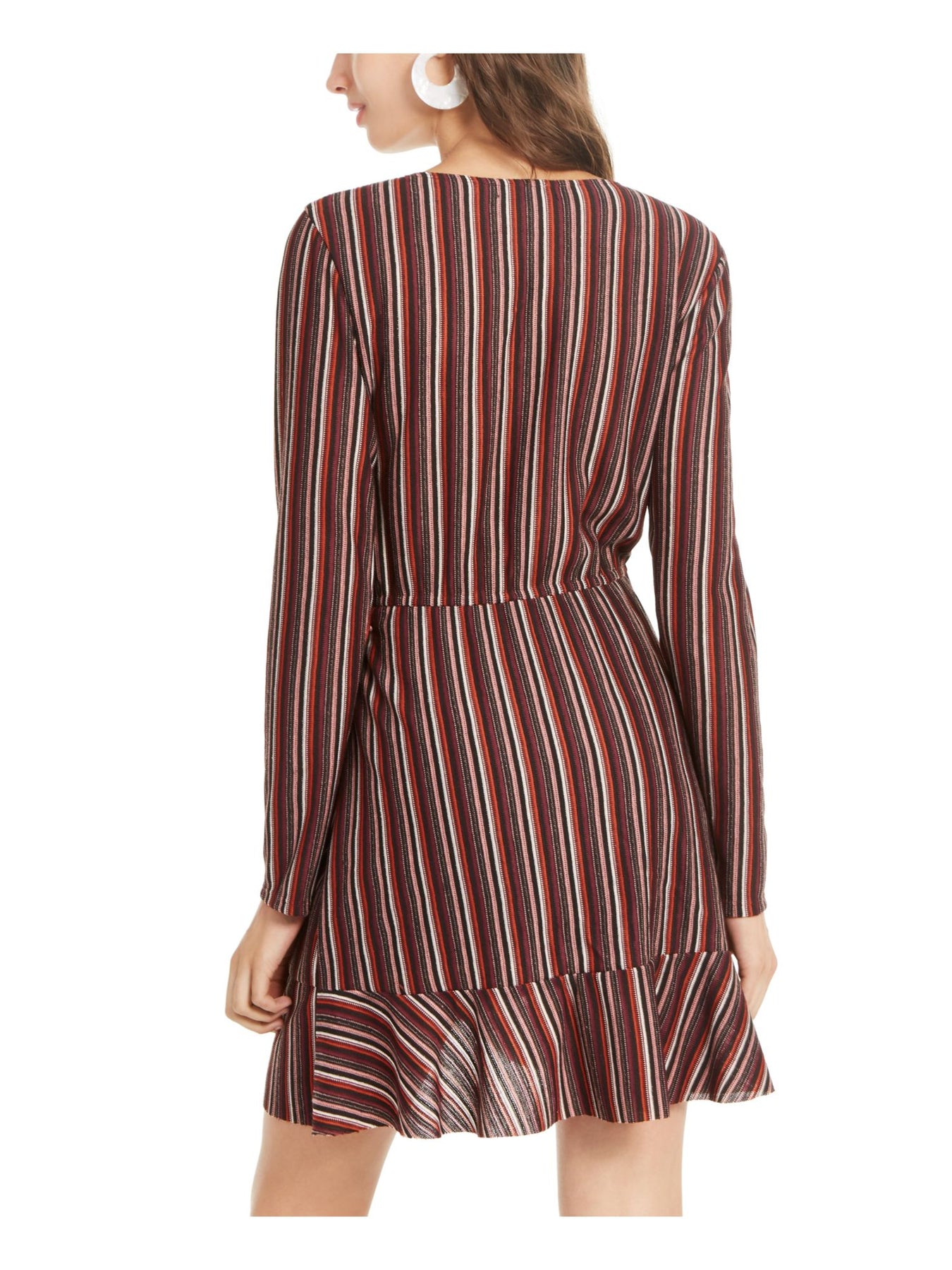 CRYSTAL DOLLS Womens Belted Striped Long Sleeve Short Wrap Dress