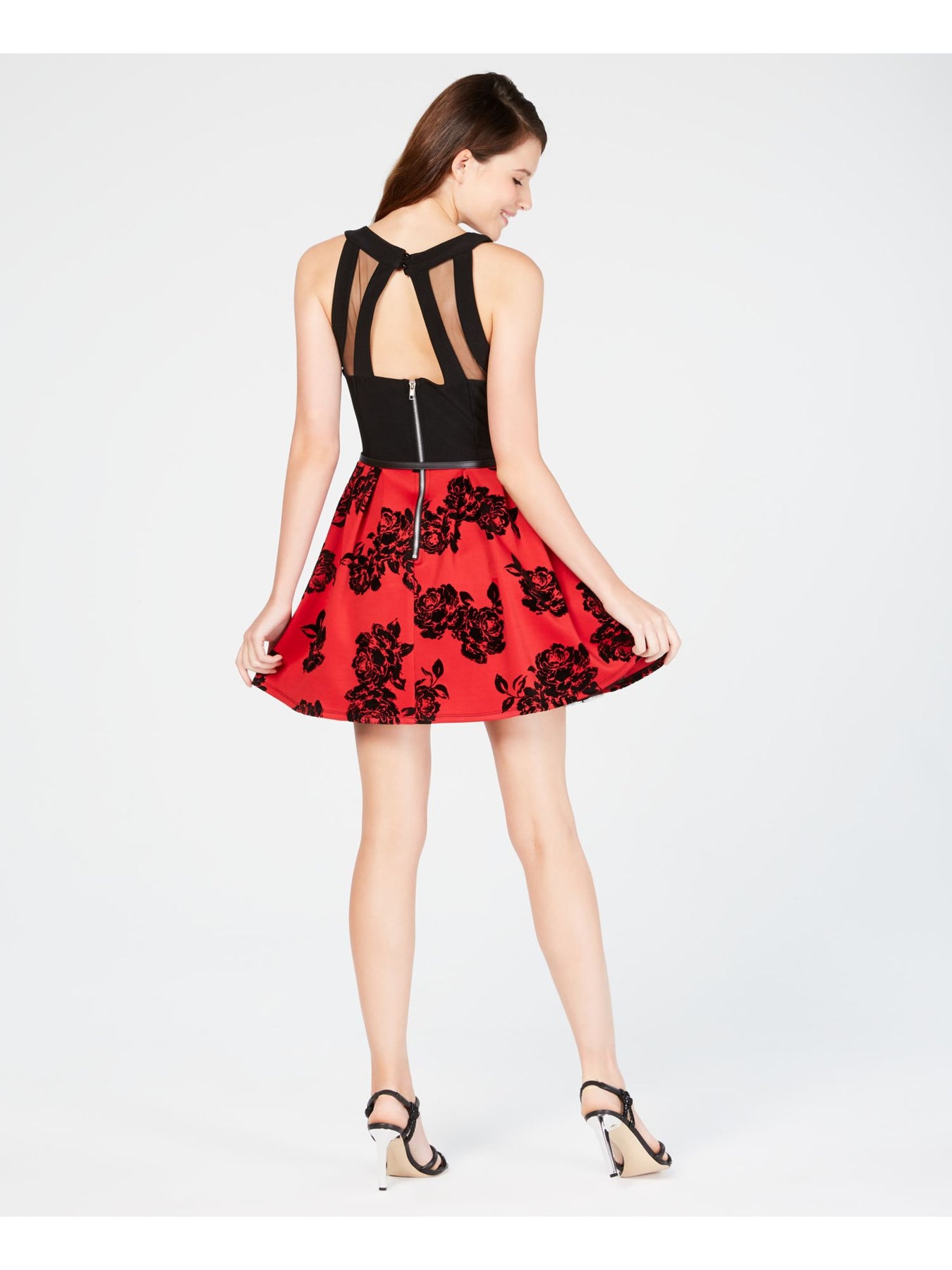 Womens Embellished Floral Sleeveless V Neck Mini Party Fit + Flare Dress