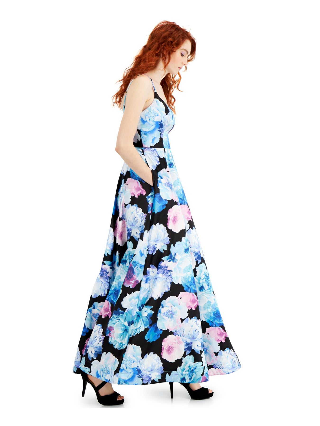 Womens Pocketed Floral Spaghetti Strap Scoop Neck Maxi Prom Fit + Flare Dress
