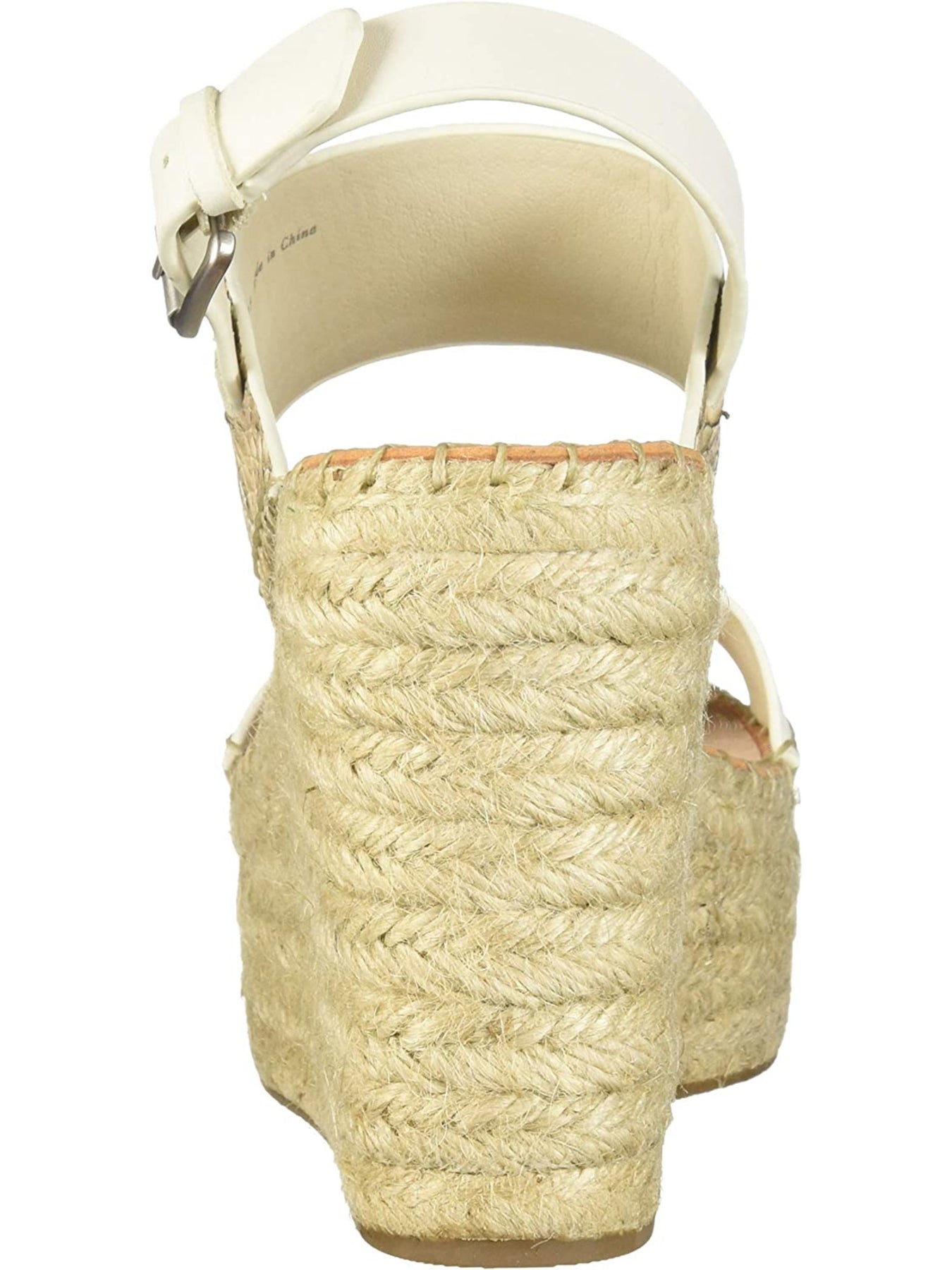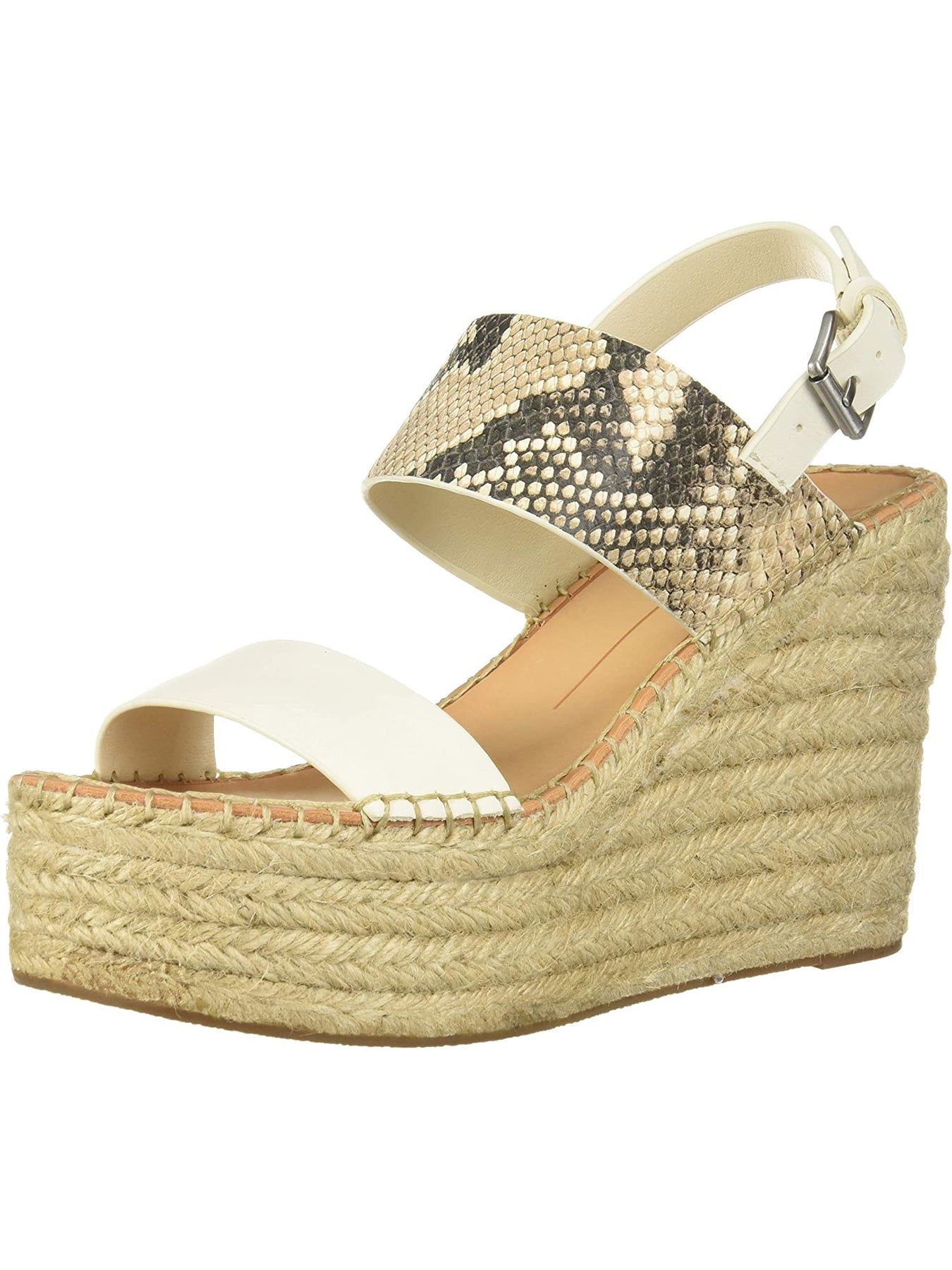 Womens Ivory Snake Print 2" Platform Jute Wrapped Adjustable Strap Comfort Spiro Round Toe Wedge Buckle Leather Slingback Sandal