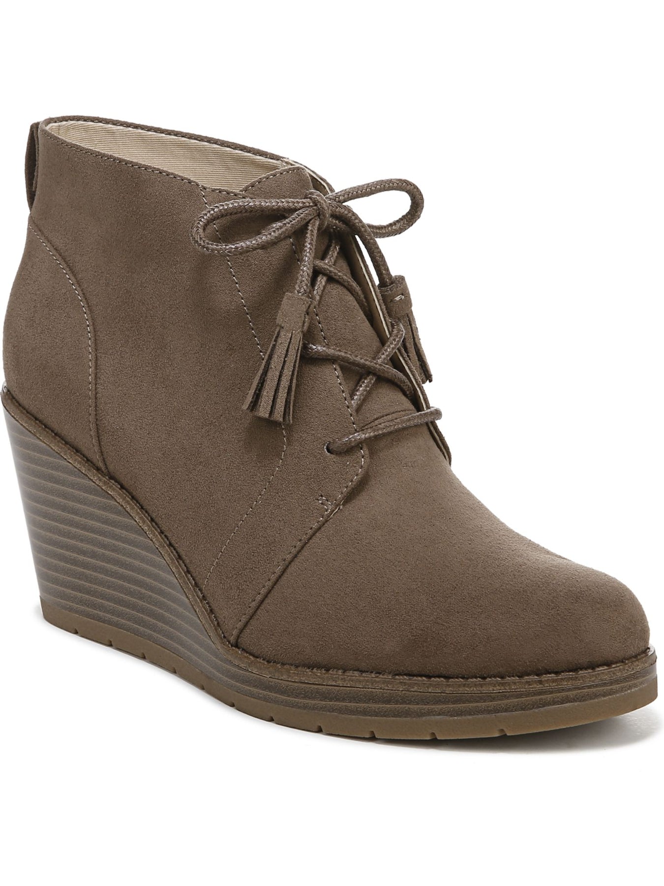 Womens Brown Cushioned One Love Almond Toe Wedge Lace-Up Booties M