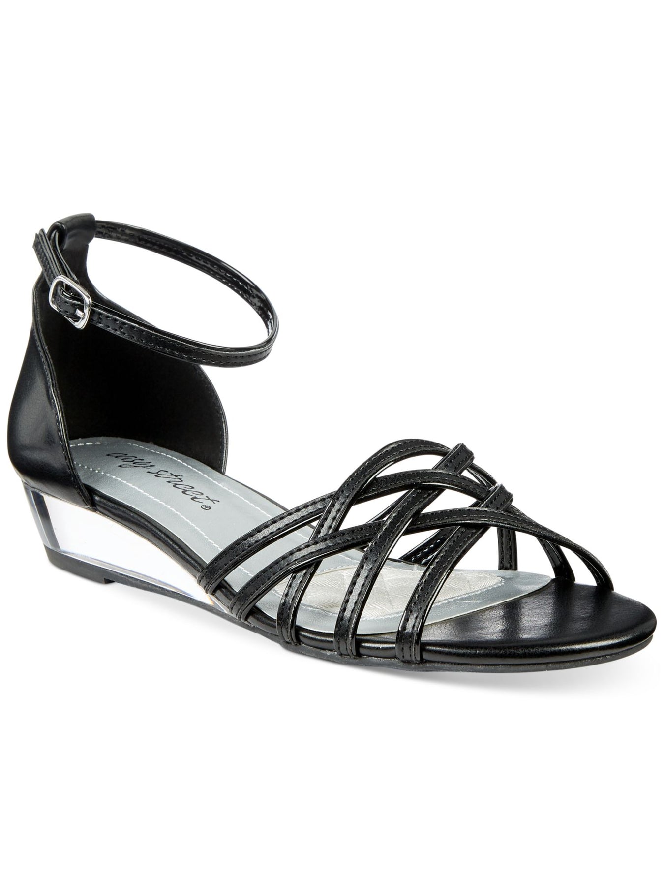 EASY STREET Womens Black Translucent Wedge Strappy Ankle Strap Padded Tarrah Round Toe Wedge Buckle Dress Sandals Shoes M