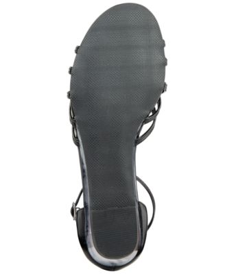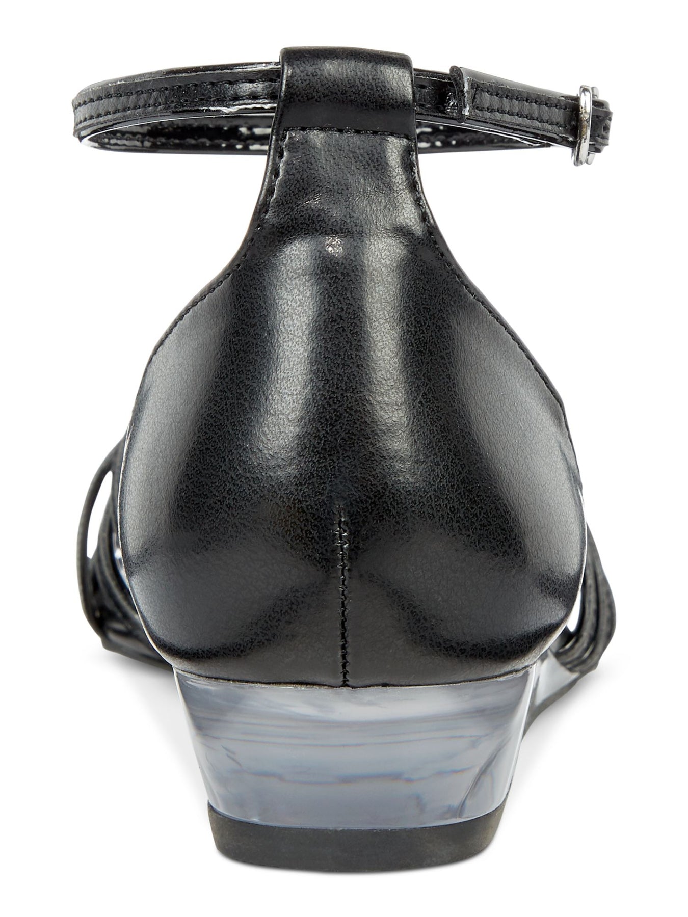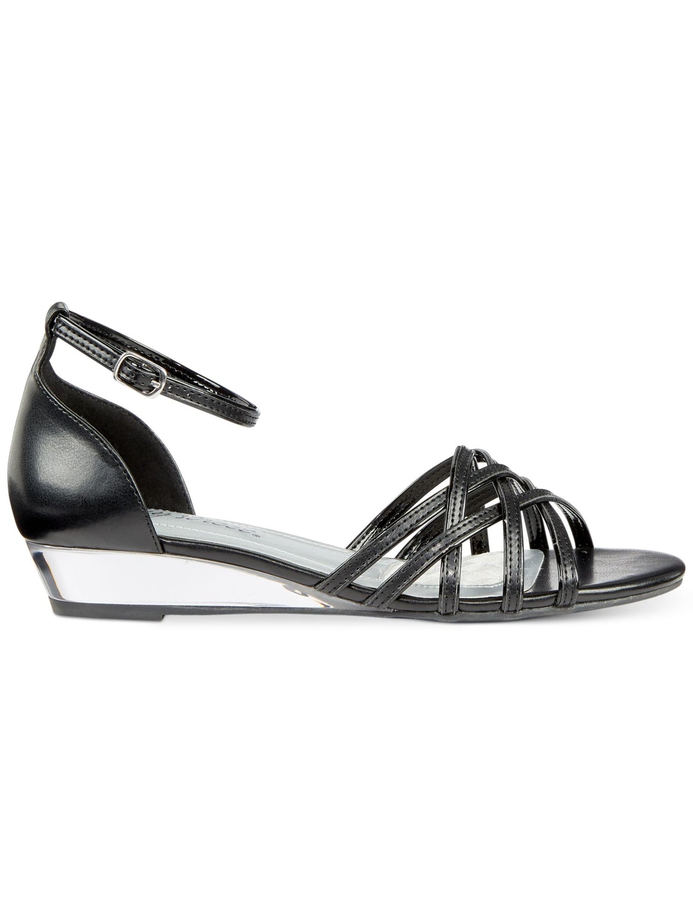EASY STREET Womens Black Translucent Wedge Strappy Ankle Strap Padded Tarrah Round Toe Wedge Buckle Dress Sandals Shoes 9 M