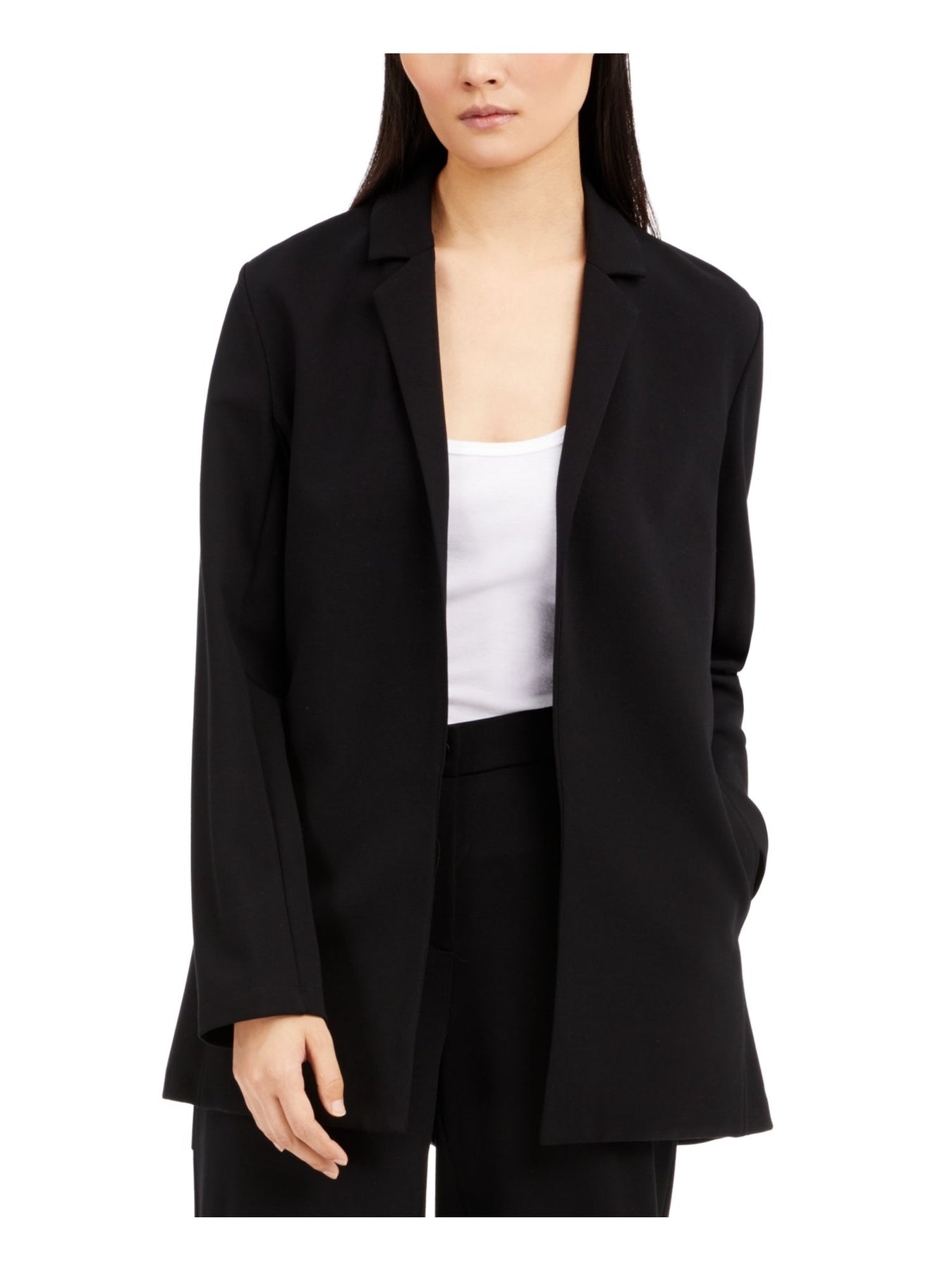 Womens Black Pocketed Tencel Notch Collar Blazer Jacket
