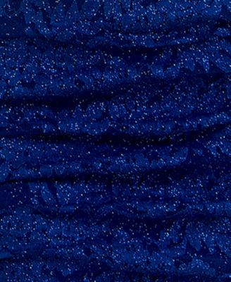 Womens Blue Ruched Lined Glitter Lace Zippered Floral Spaghetti Strap Square Neck Short Party Body Con Dress