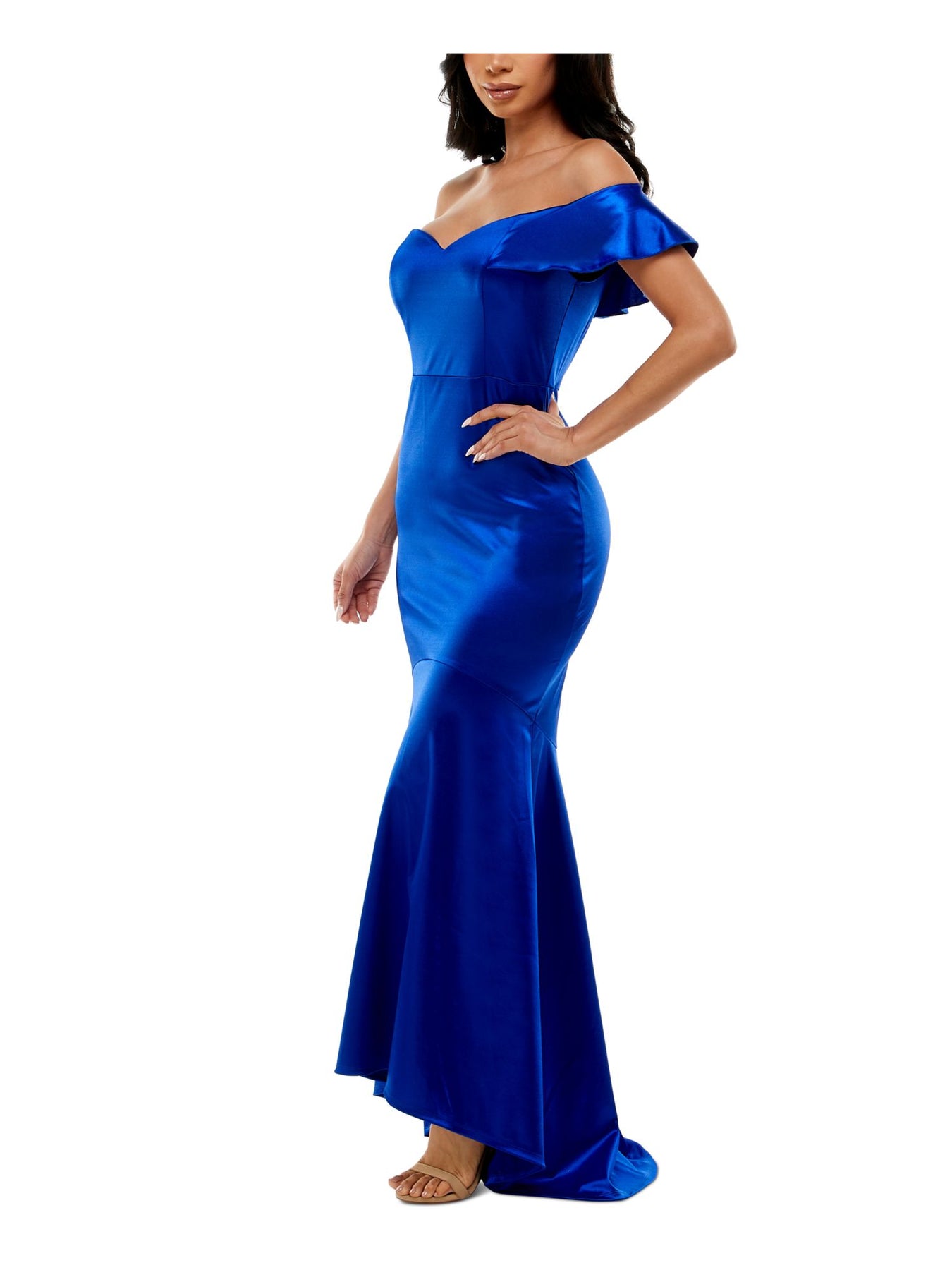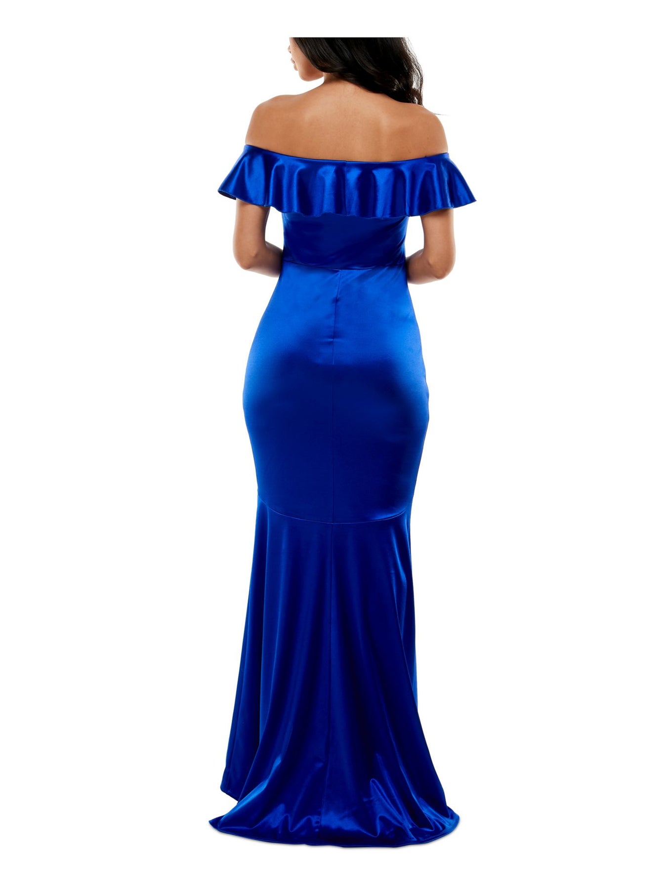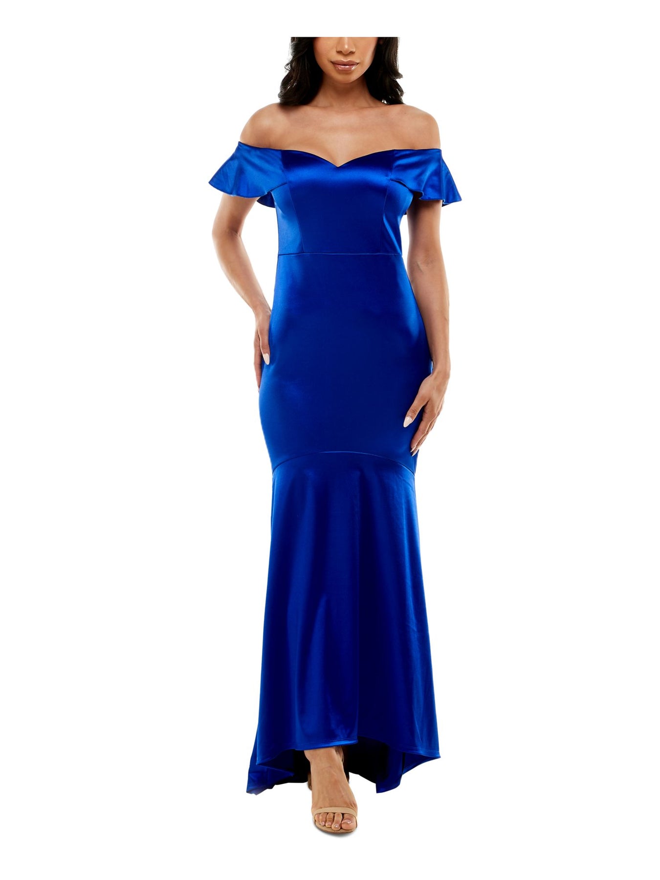 EMERALD SUNDAE Womens Blue Ruffled Short Sleeve Off Shoulder Maxi Formal Mermaid Dress XXS
