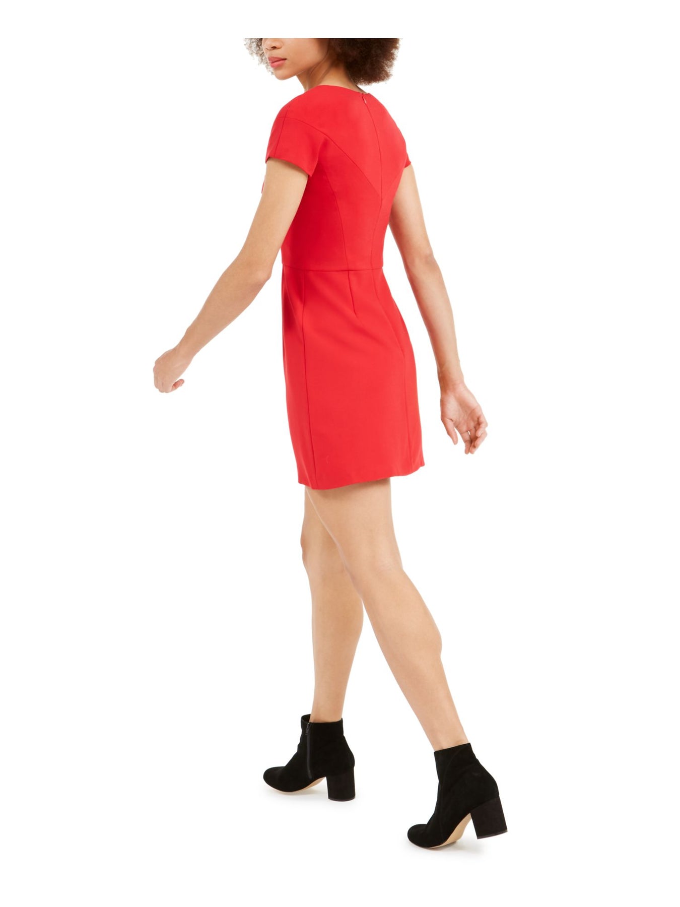 FRENCH CONNECTION Womens Red Short Sleeve Scoop Neck Short Party Fit + Flare Dress 0