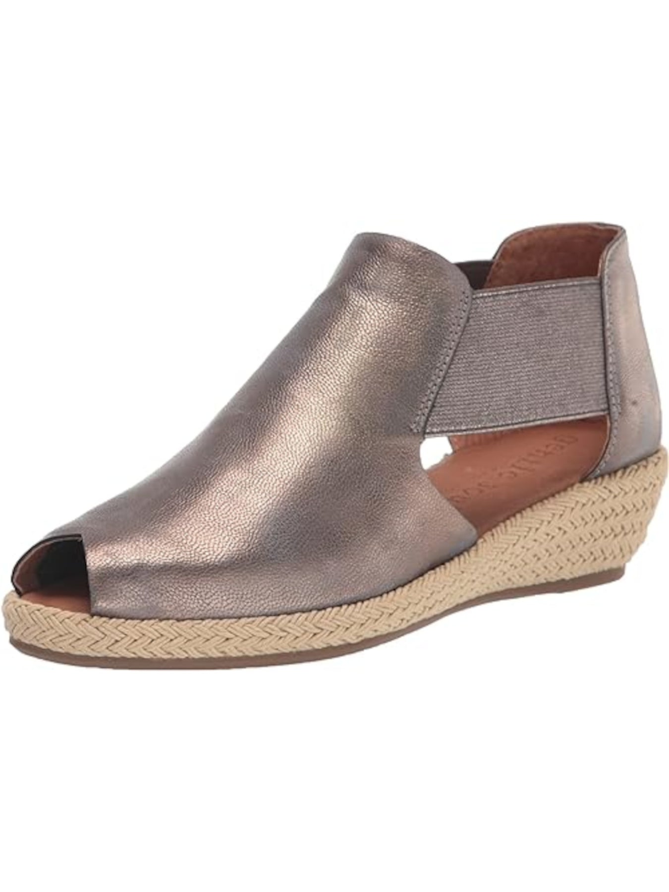 Womens Gray Espadrille Cushioned Goring Cut Out Noa Peep Toe Wedge Slip On Leather Shootie M