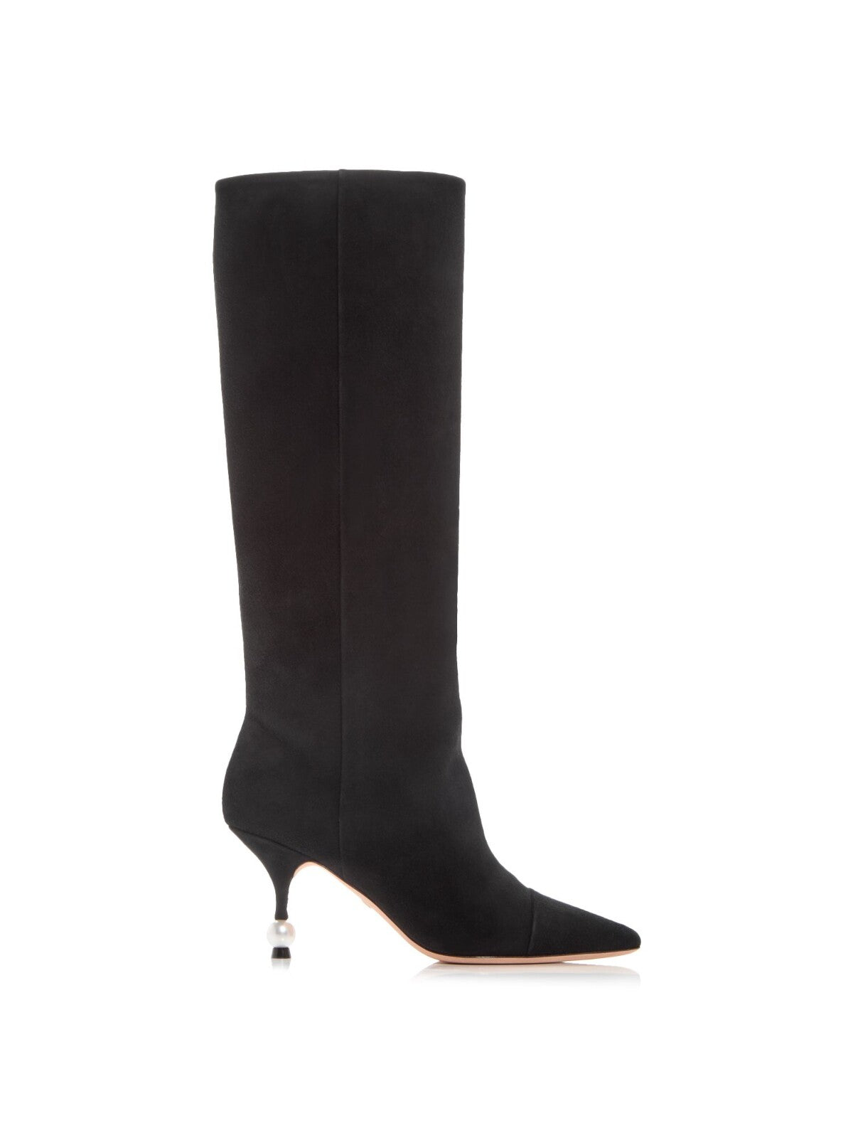 Womens Black Faux Pearl Padded Pearl Pointed Toe Sculpted Heel Leather Dress Heeled Boots