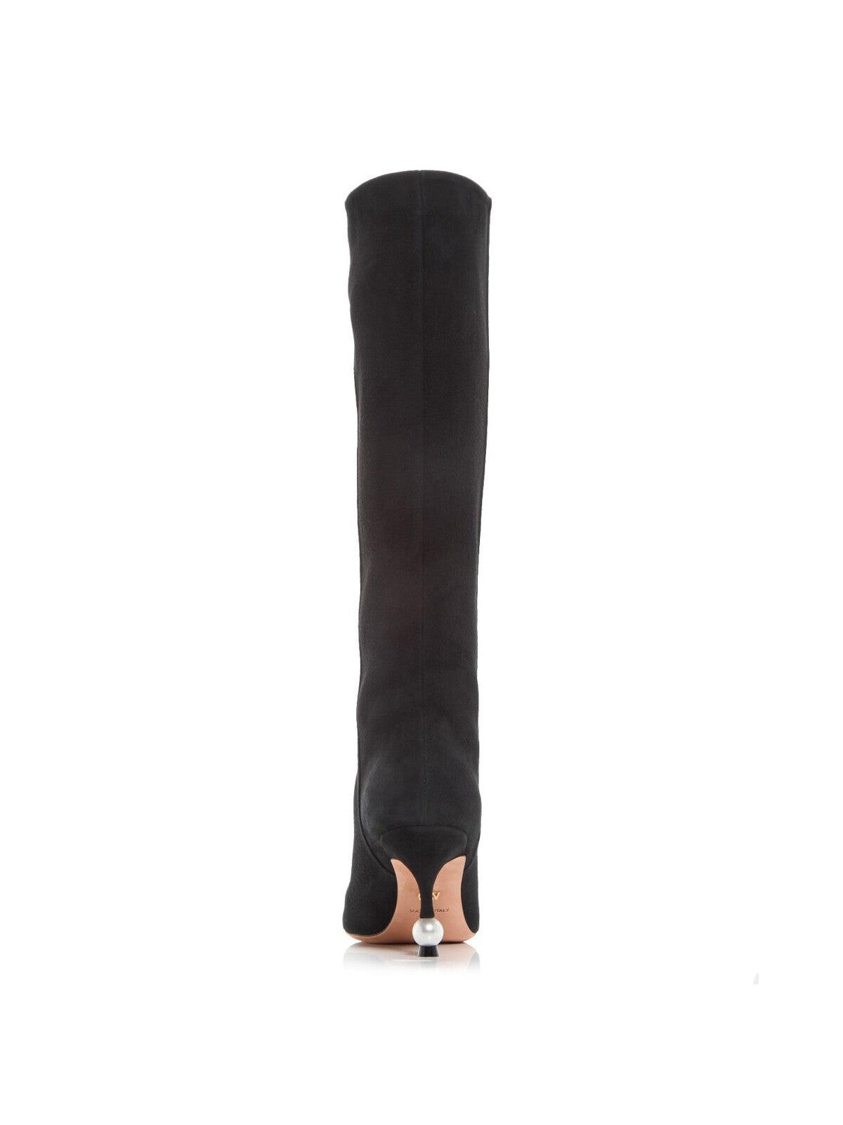 GIAMBATTISTA VALLI Womens Black Faux Pearl Padded Pearl Pointed Toe Sculpted Heel Leather Dress Heeled Boots