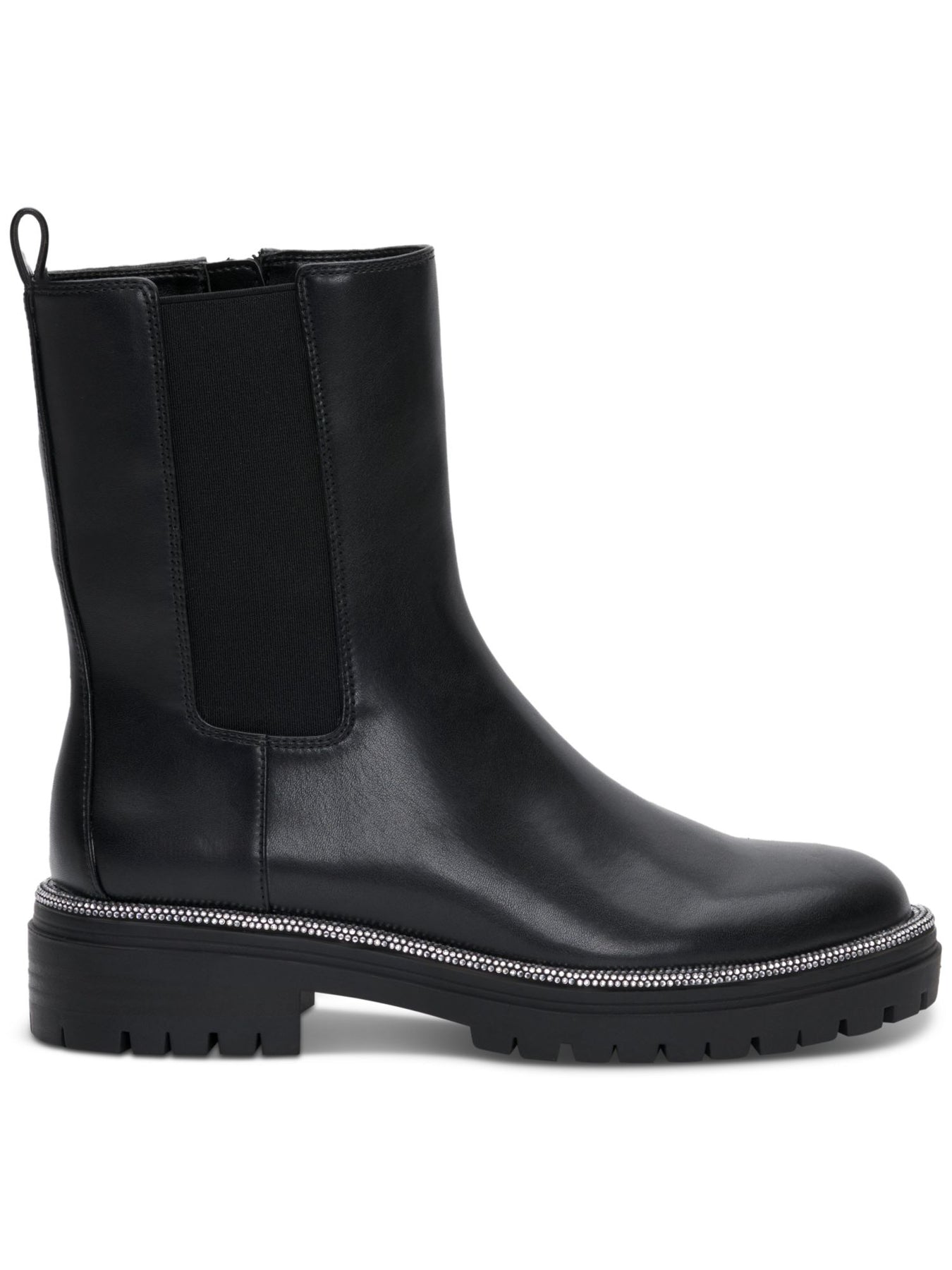 Womens Black Padded Pull Tab Embellished Goring Brycin Round Toe Block Heel Zip-Up Booties M