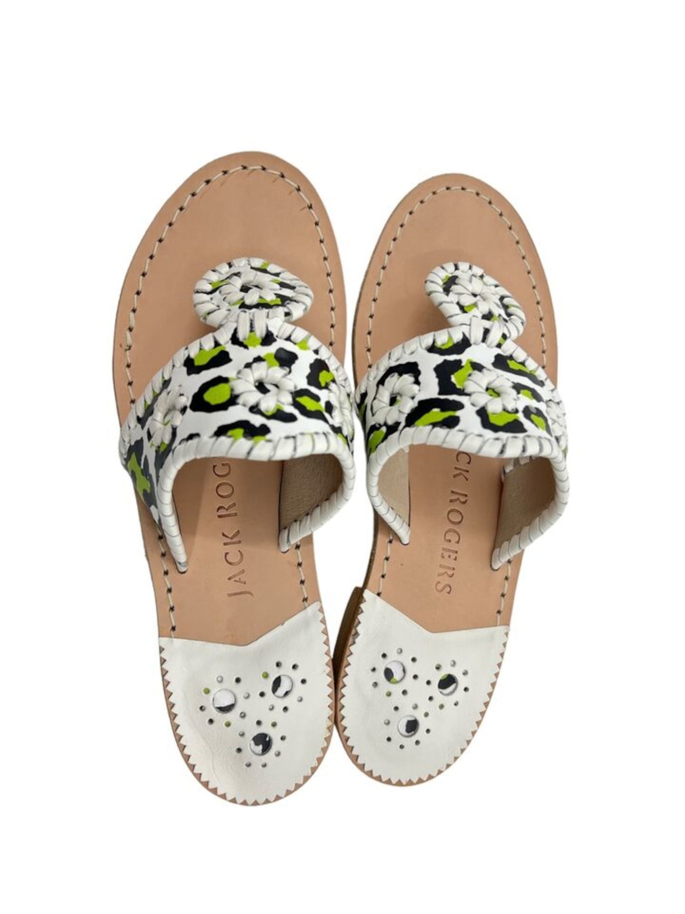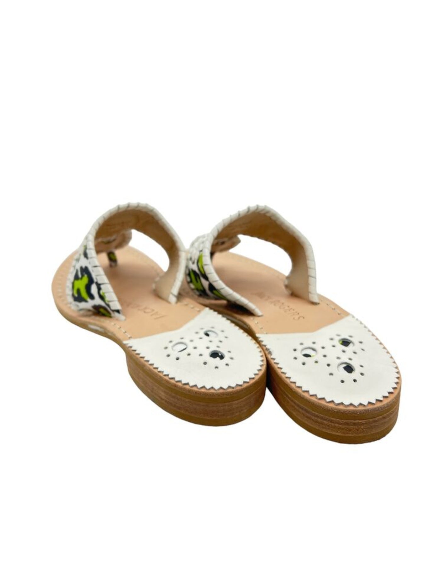 Womens White Mixed Media Whipstitch Eyelet Jacks Open Toe Slip On Leather Thong Sandals Shoes M