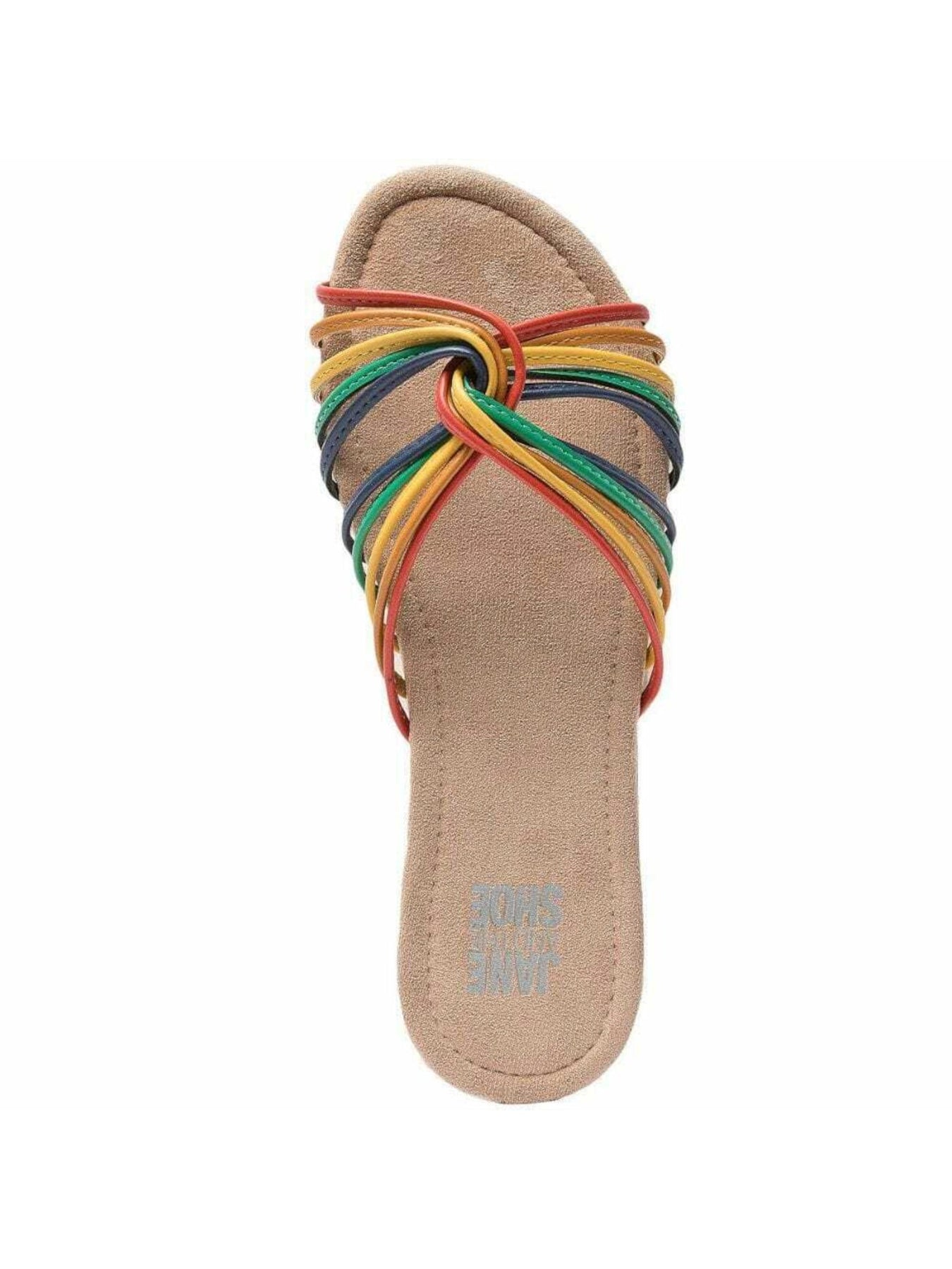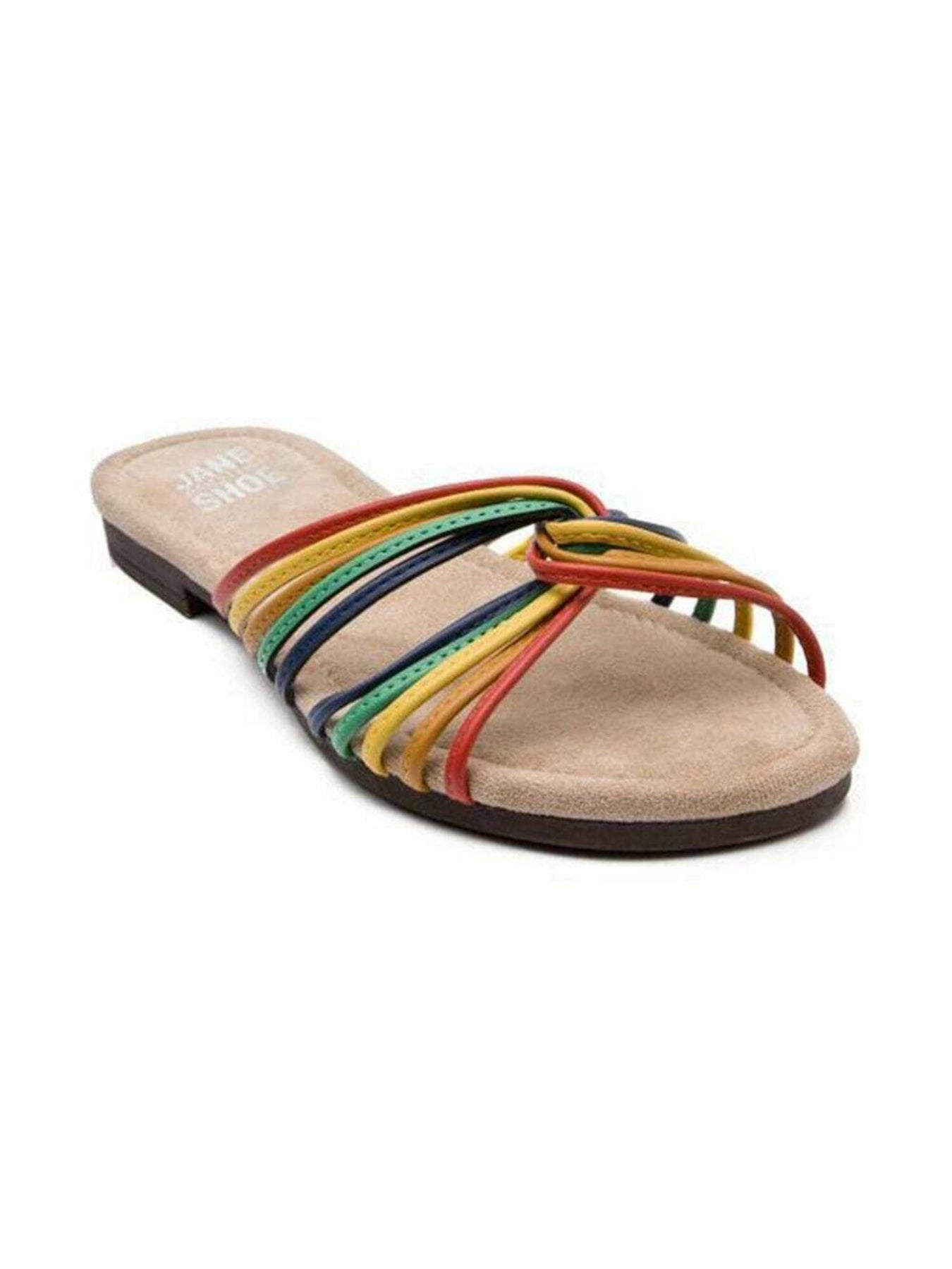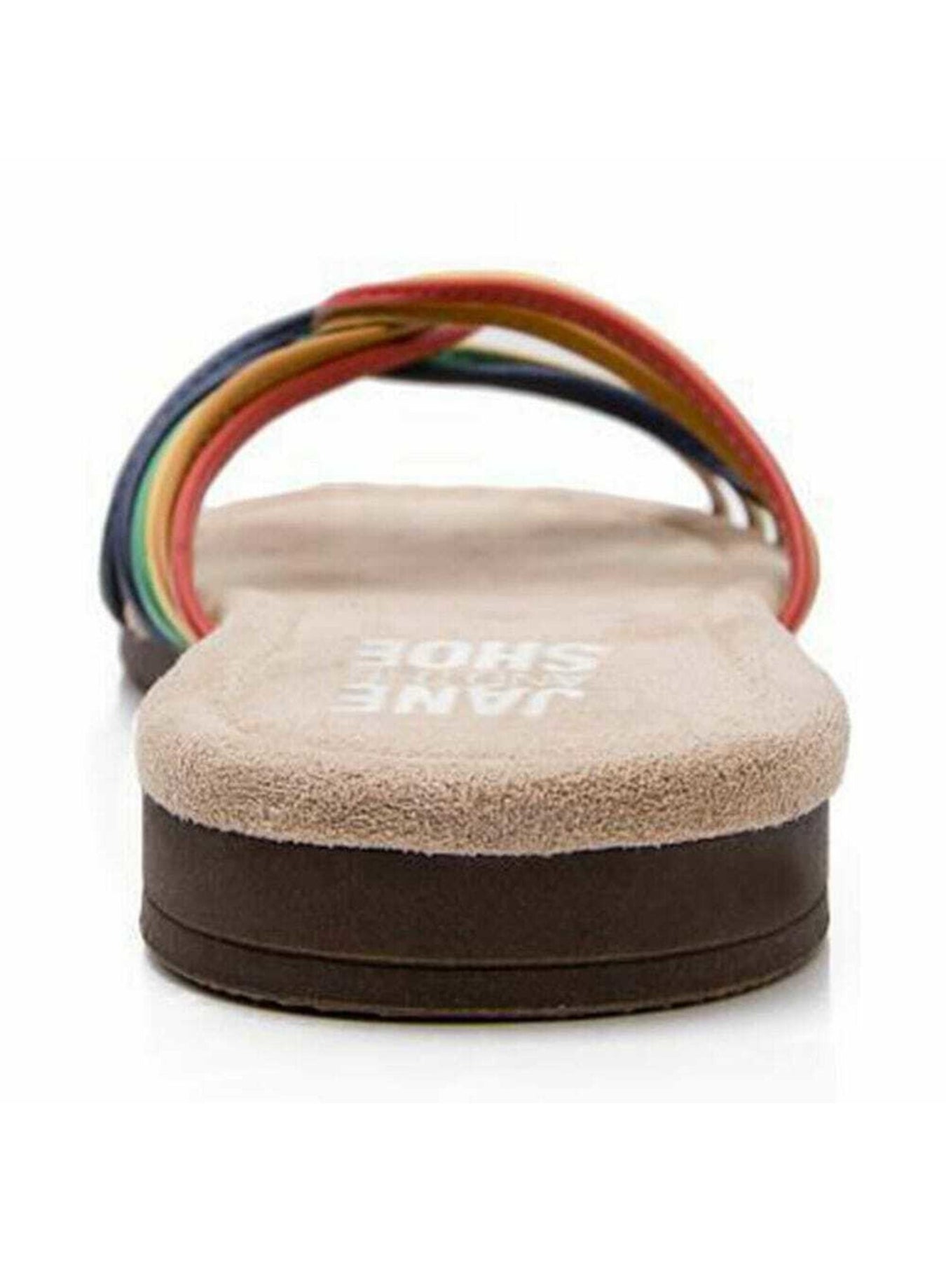 Womens Beige Rainbow Cushioned Strappy Hallie Open Toe Slip On Slide Sandals Shoes