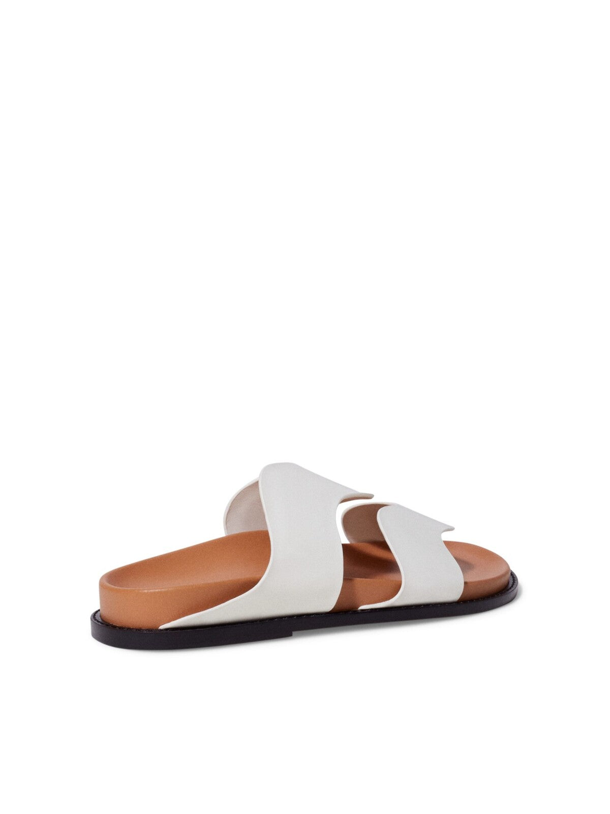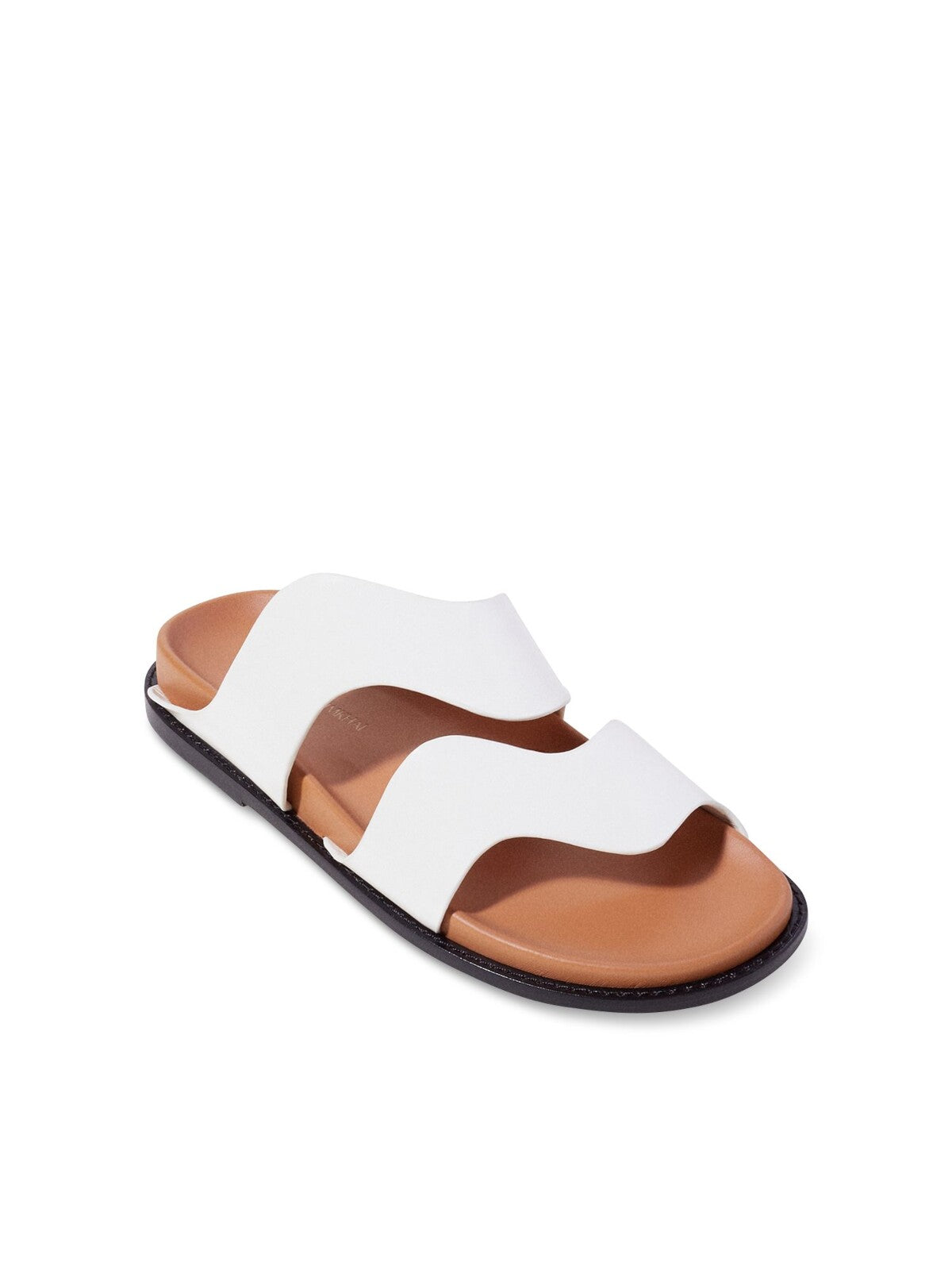 Womens Ivory Dual Straps Contoured Footbed Callen Wave Open Toe Slip On Leather Slide Sandals Shoes
