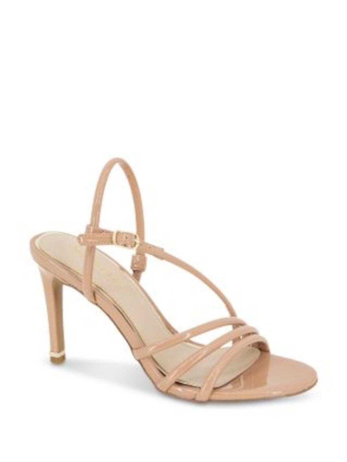 Womens Beige Goring Metallic Hardware Padded Strappy Baxley Round Toe Stiletto Buckle Dress Slingback Sandal M