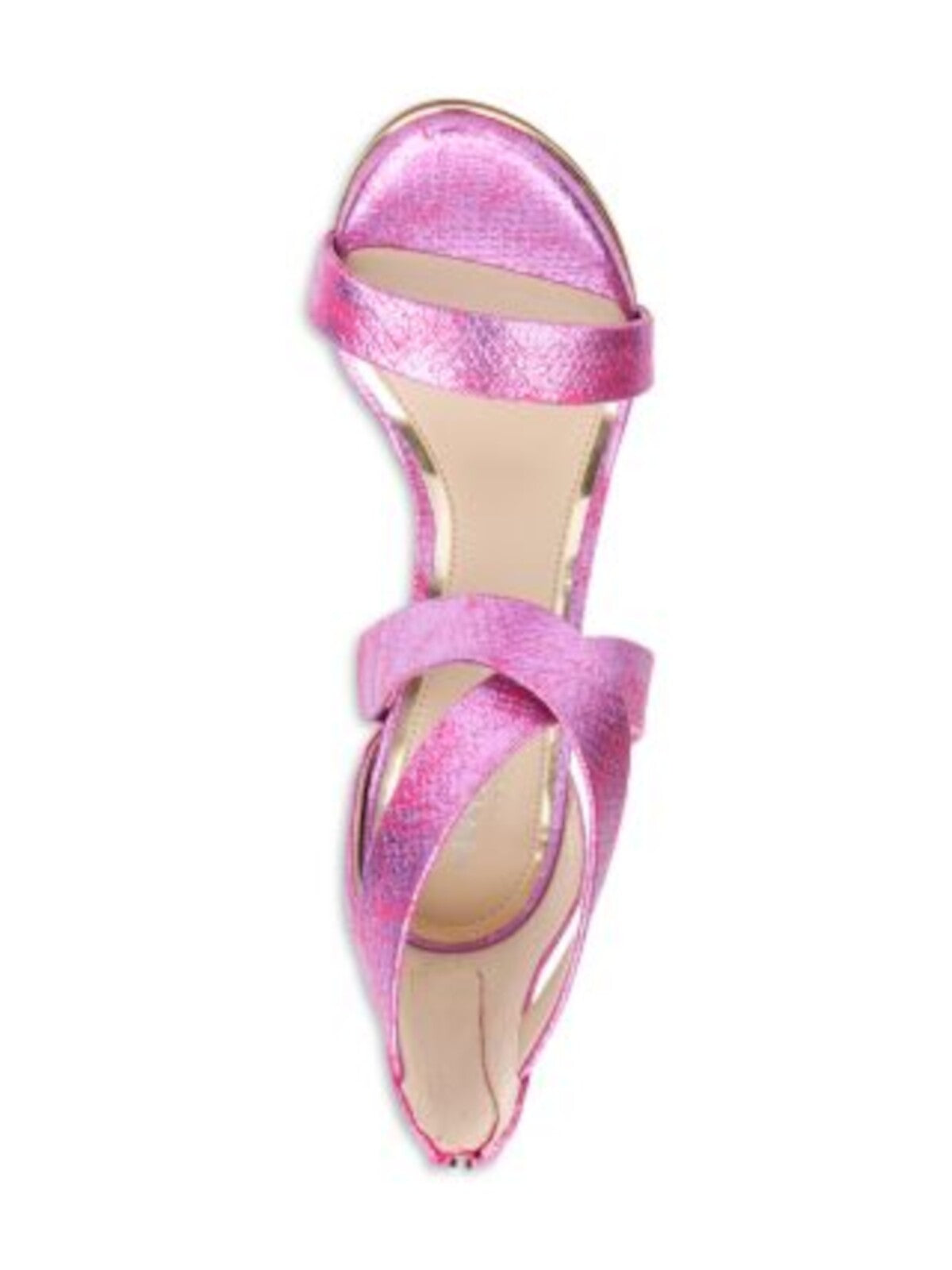 KENNETH COLE NEW YORK Womens Purple Snake Embossed Goring Crisscross Straps Metallic Padded Brooke Almond Toe Stiletto Zip-Up Dress Heeled Sandal 5.5 M