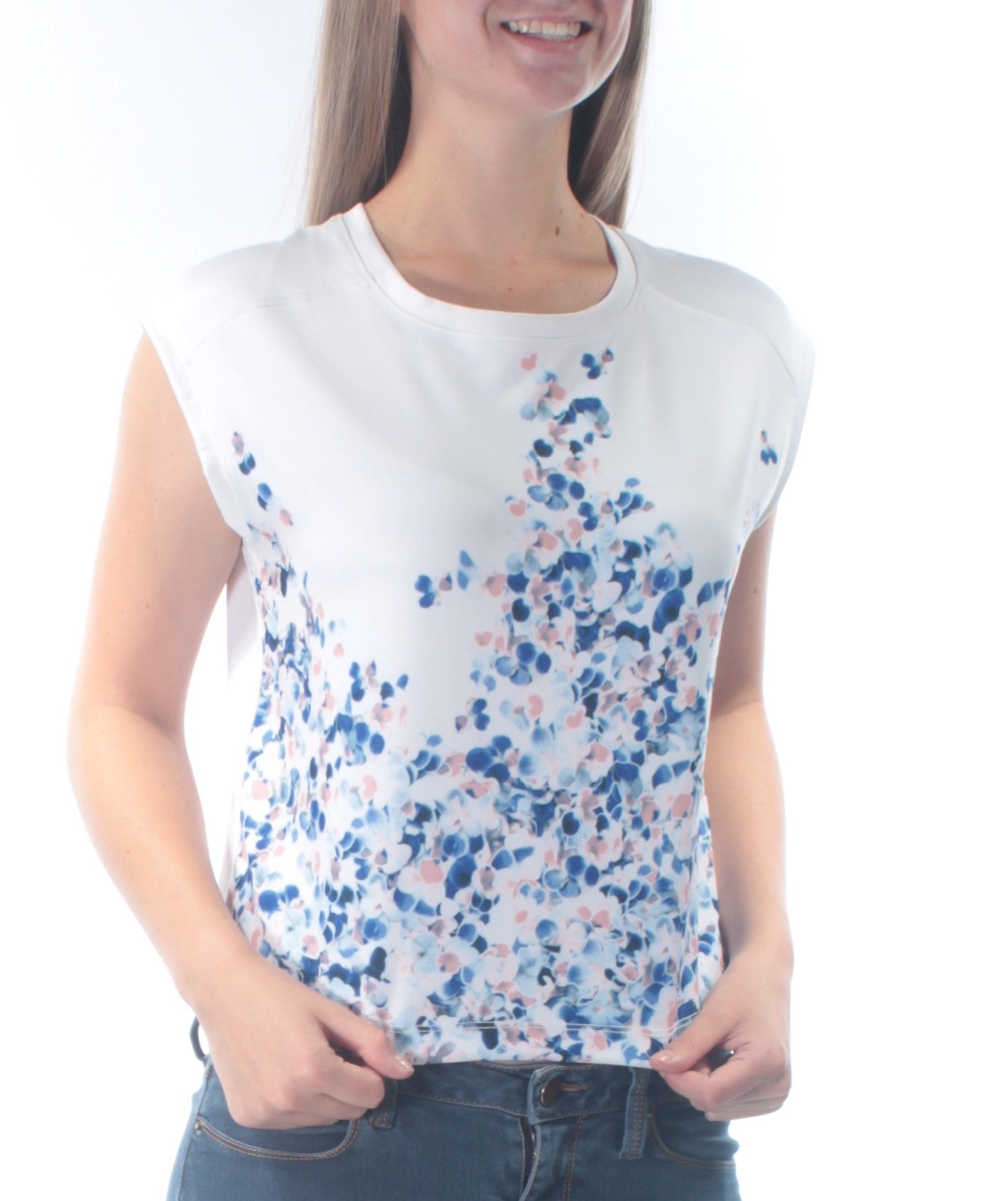 KIIND OF Womens White Floral Cap Sleeve Jewel Neck Top S