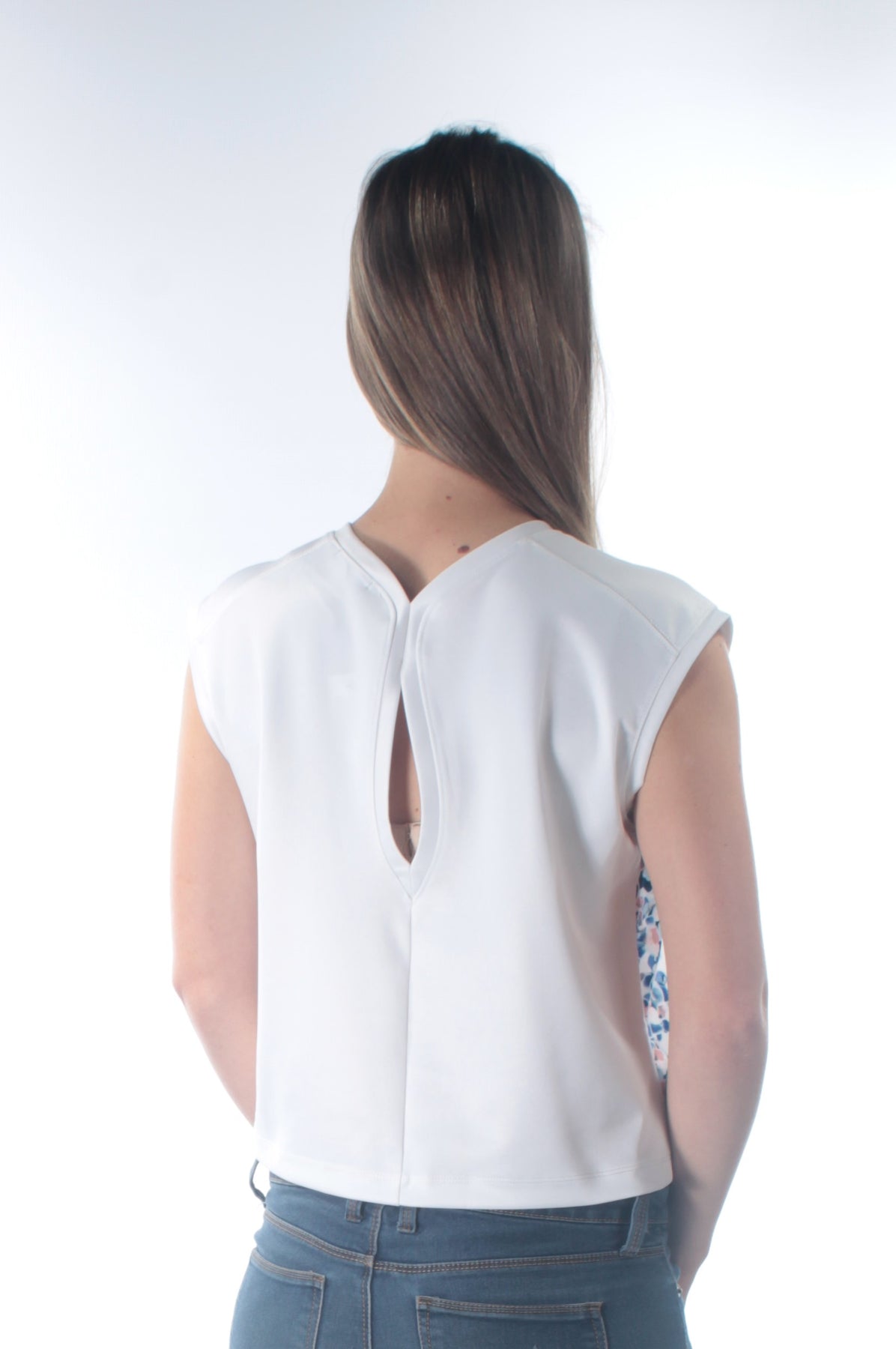 KIIND OF Womens White Floral Cap Sleeve Jewel Neck Top