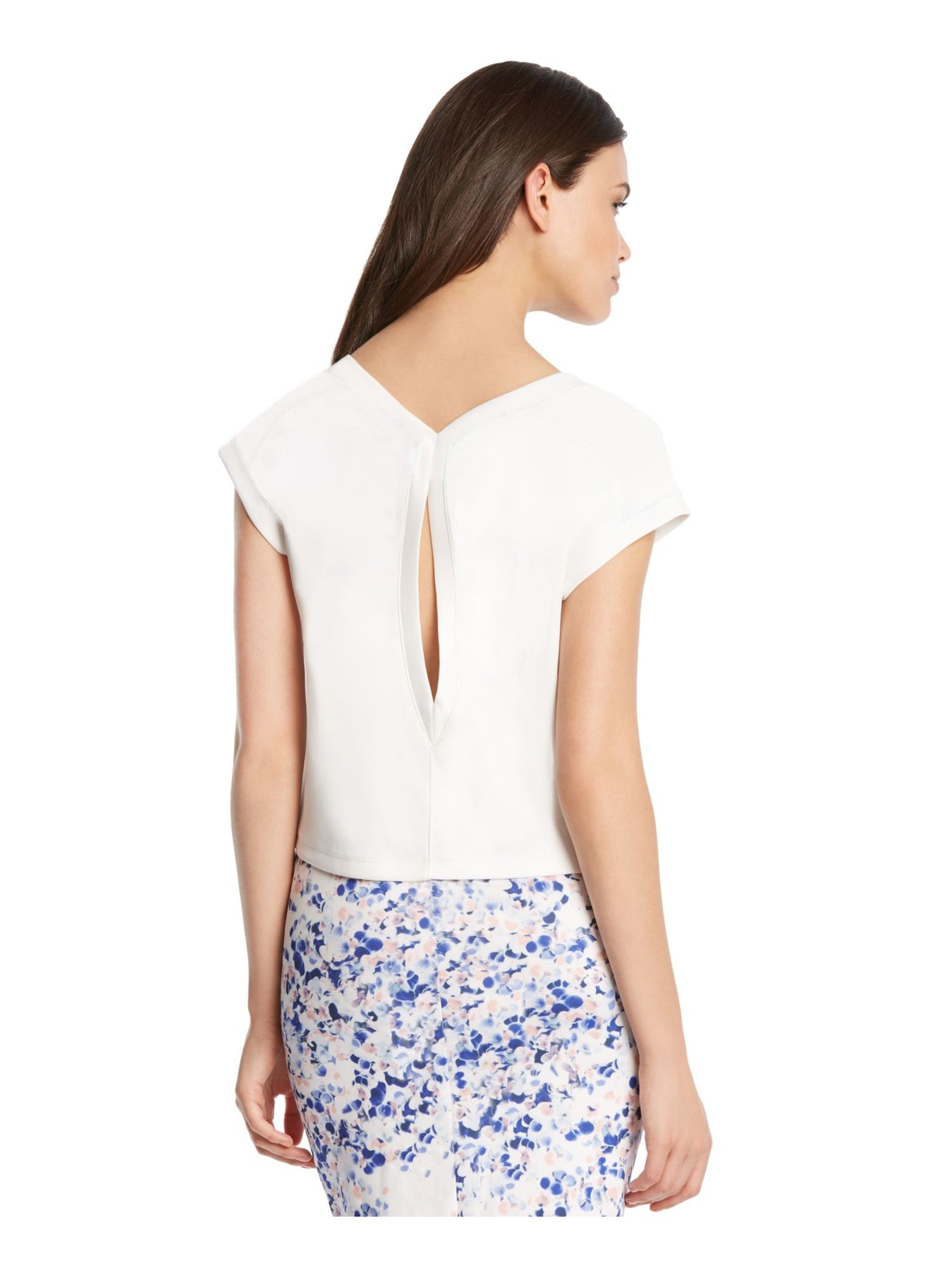 Womens White Floral Cap Sleeve Jewel Neck Top