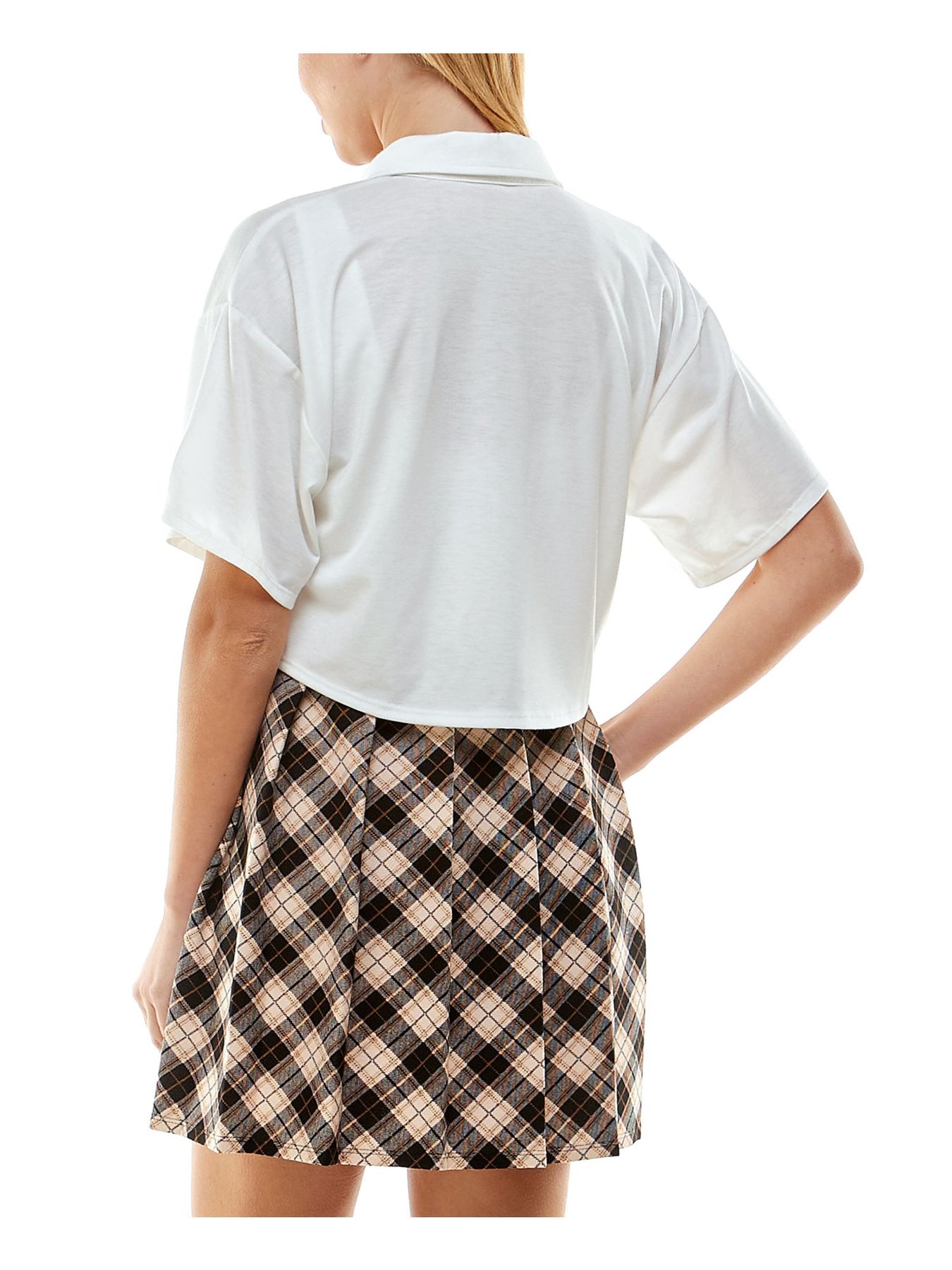 KINGSTON GREY Womens White Pleated Lined Printed Skirt Pullover Color Block Short Sleeve Collared Short Fit + Flare Dress M
