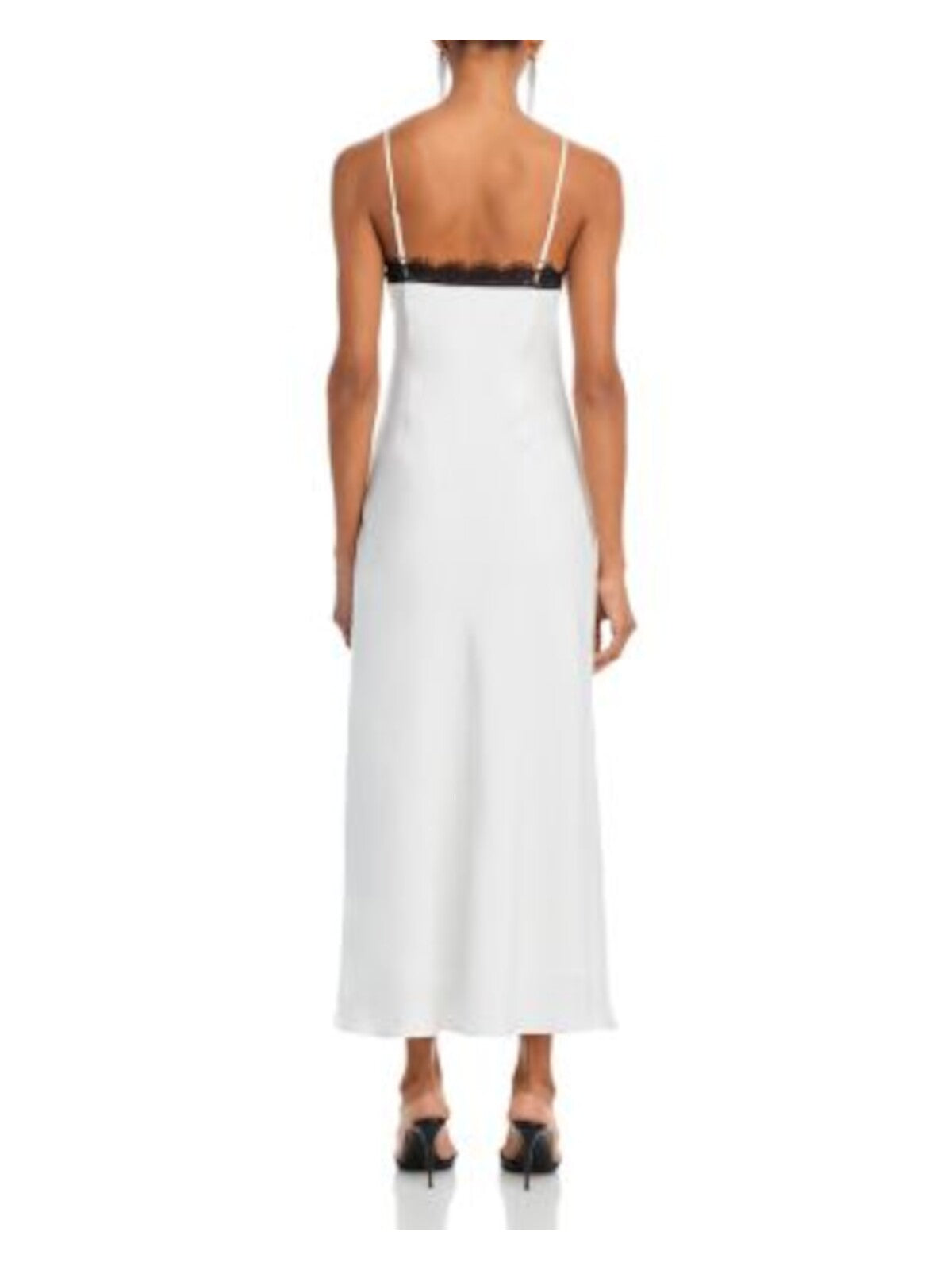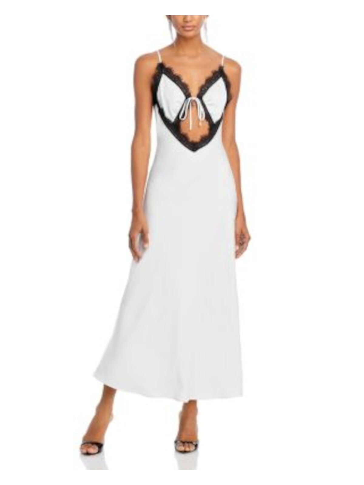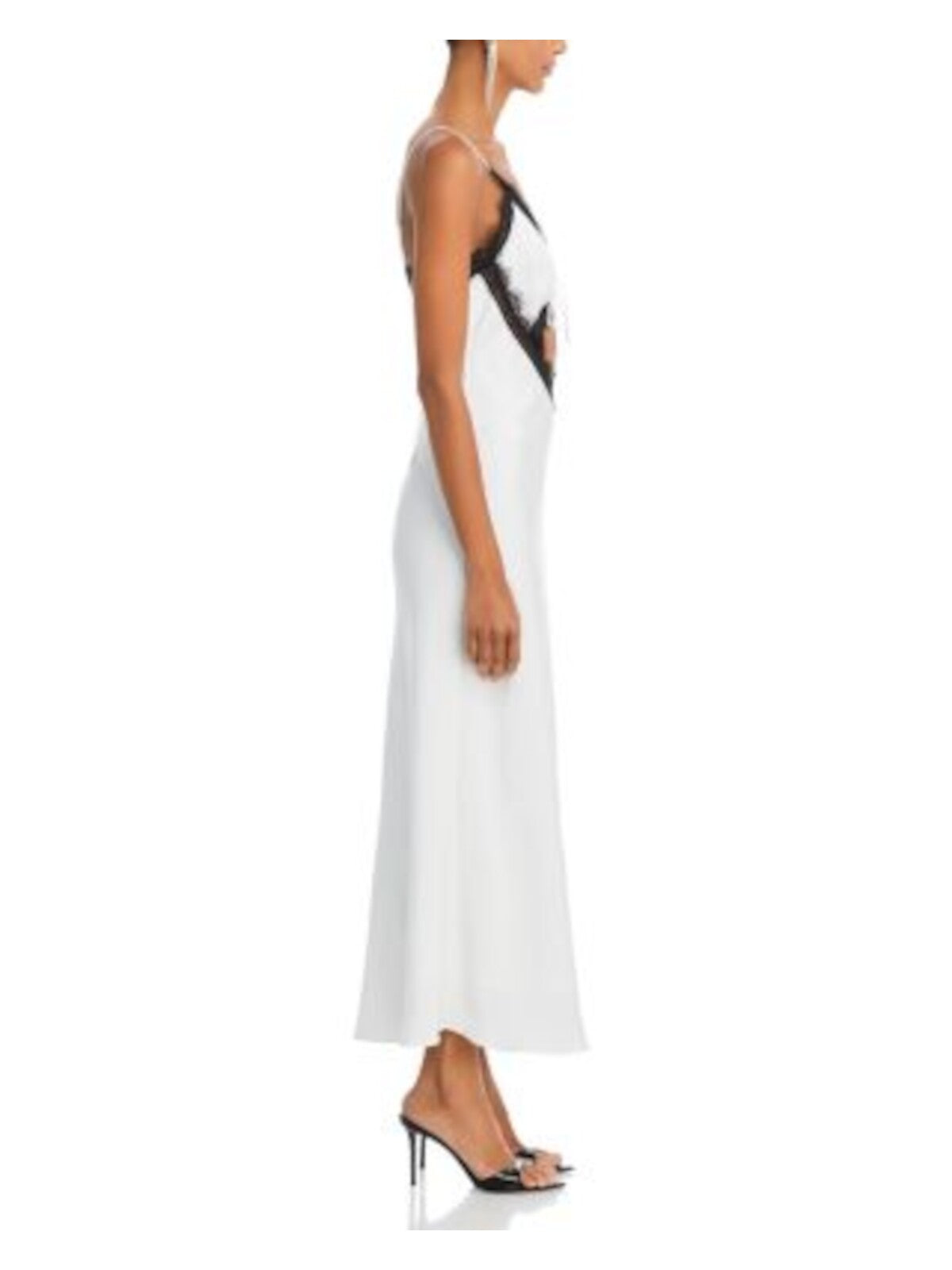 Womens White Zippered Lined Contrast Lace Trim Cutout Midrif Spaghetti Strap V Neck Maxi Evening Fit + Flare Dress