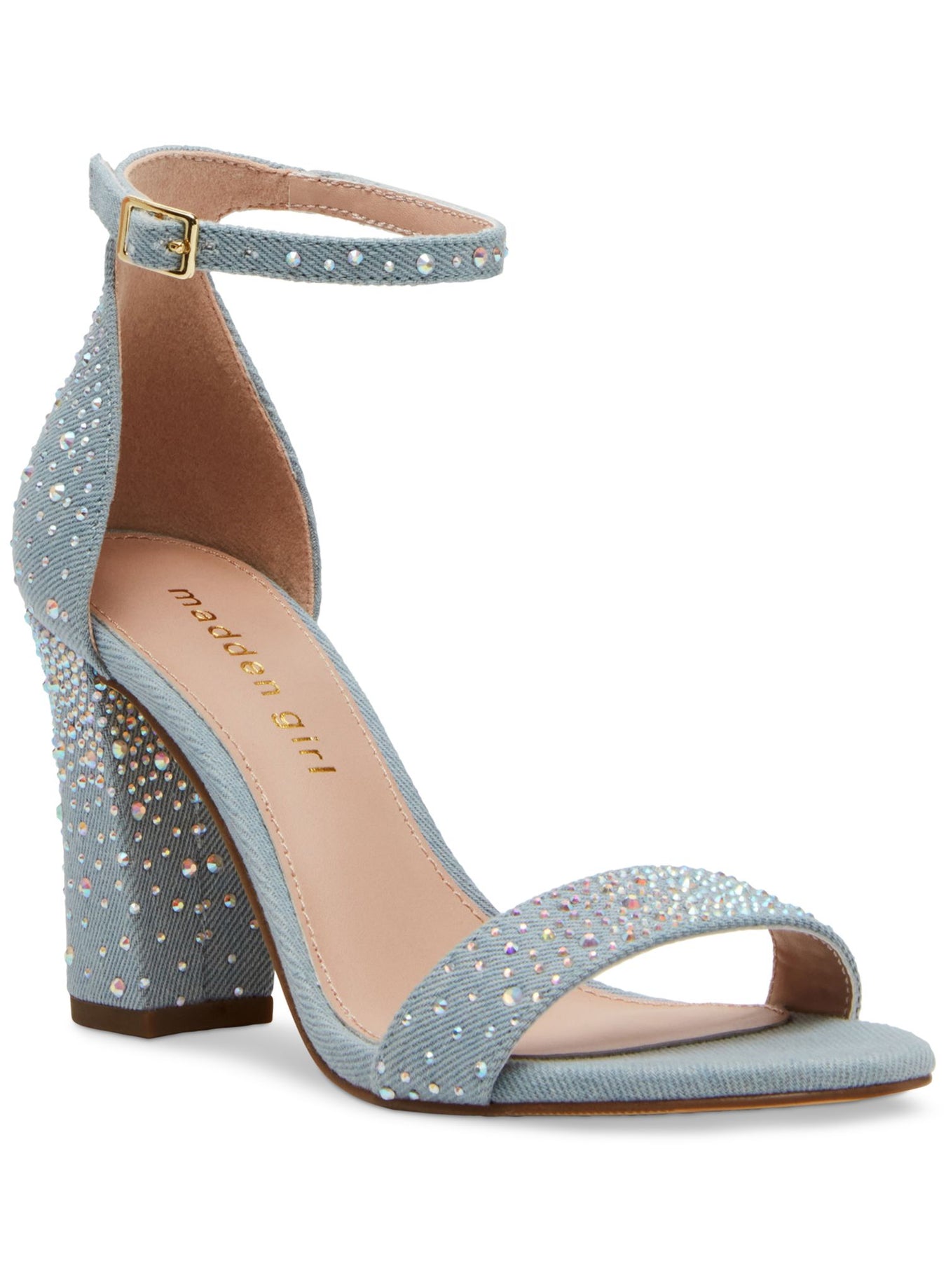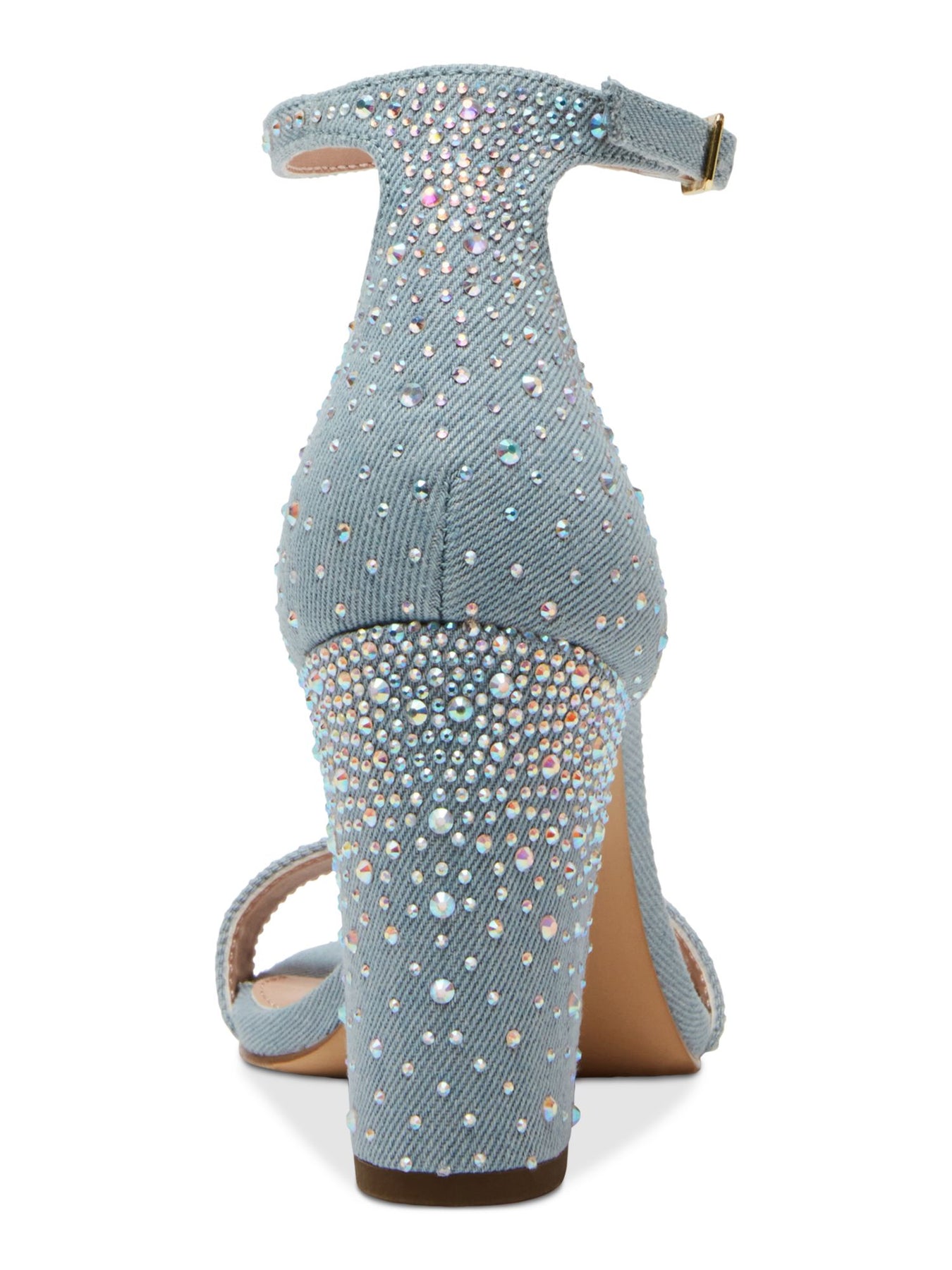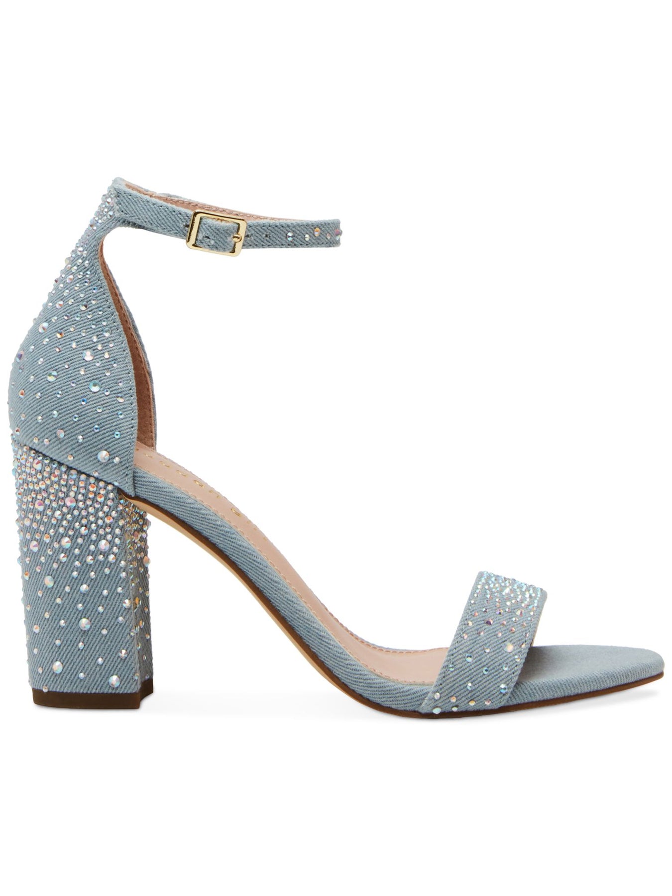 Womens Blue Adjustable Ankle Strap Padded Rhinestone Embellished Beella Open Toe Block Heel Buckle Dress Heeled M