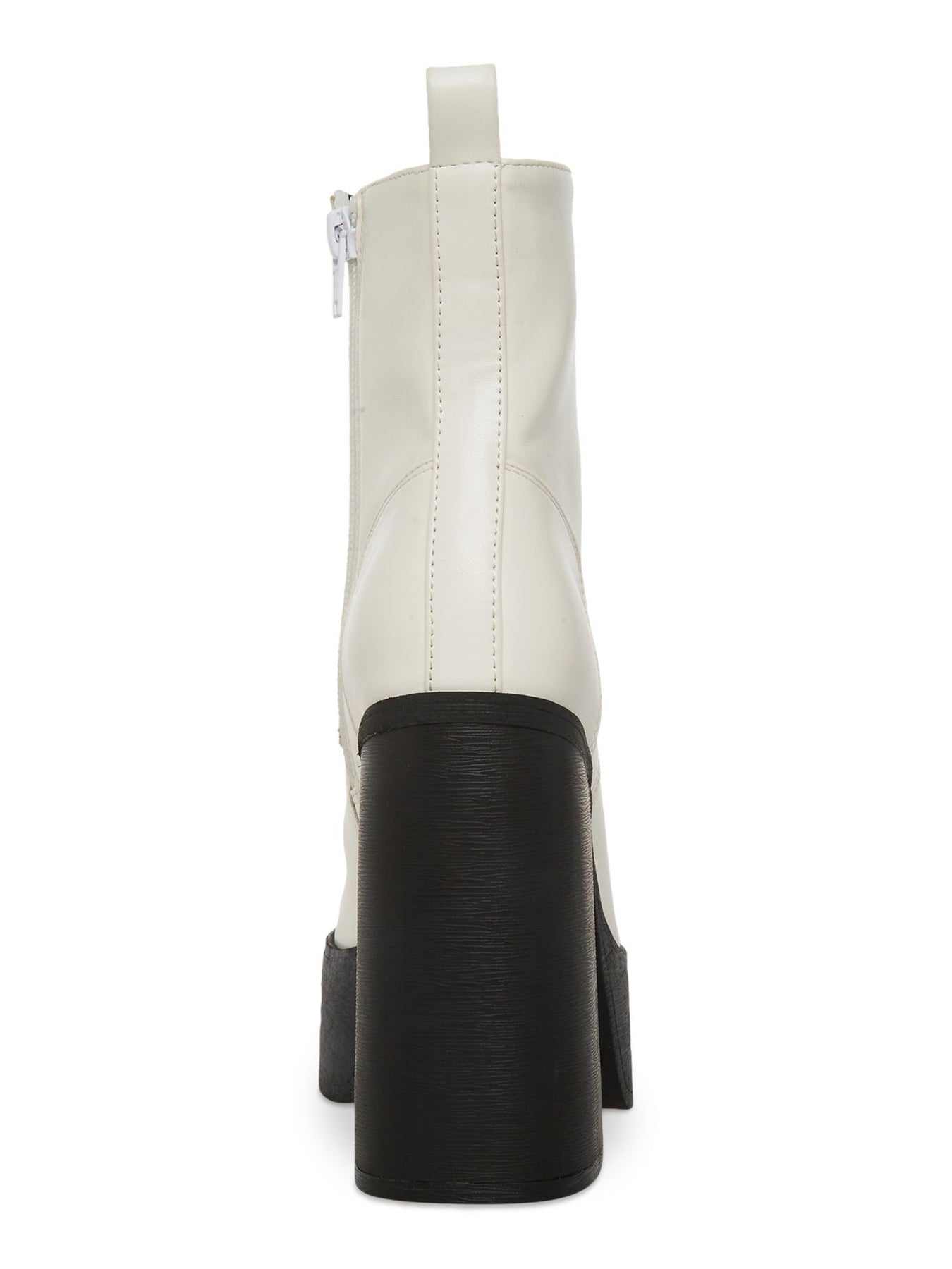 Womens White 1-1/2" Platform Comfort Lace Driven Round Toe Block Heel Zip-Up Combat Boots M